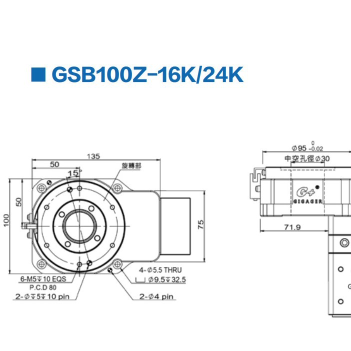 Полый роторный платформенный редуктор G+ GIGAGER GSB100Z-24K-SV, высокоточный редуктор под прямым углом