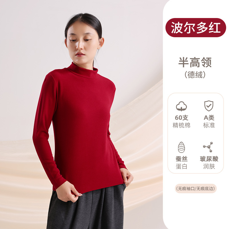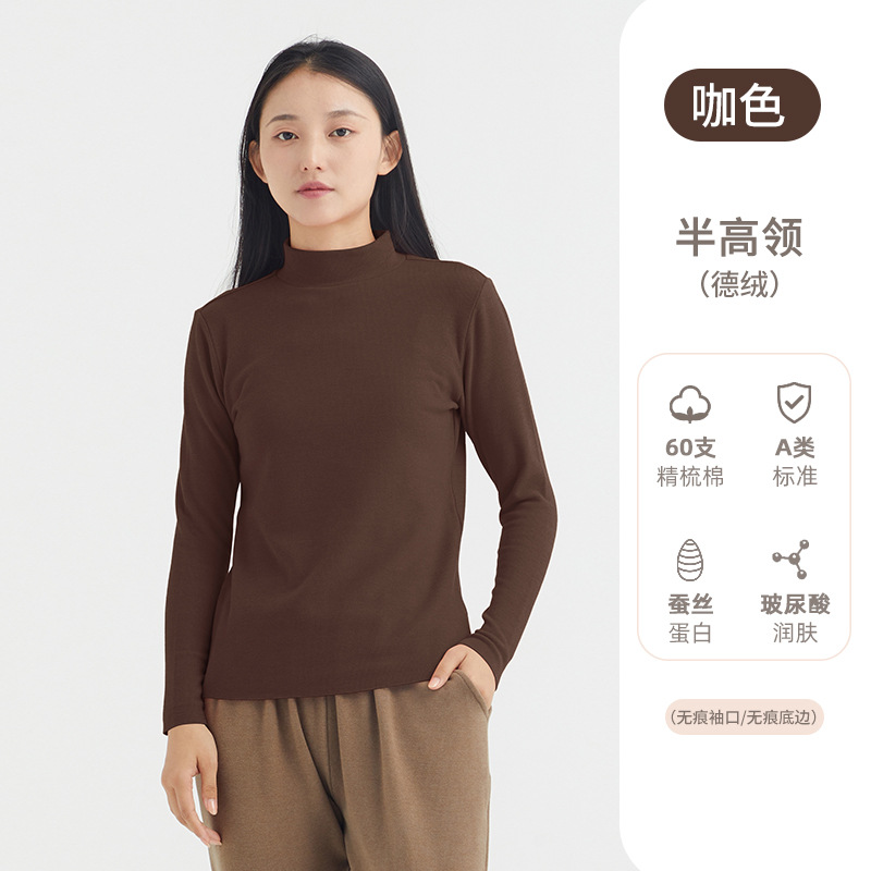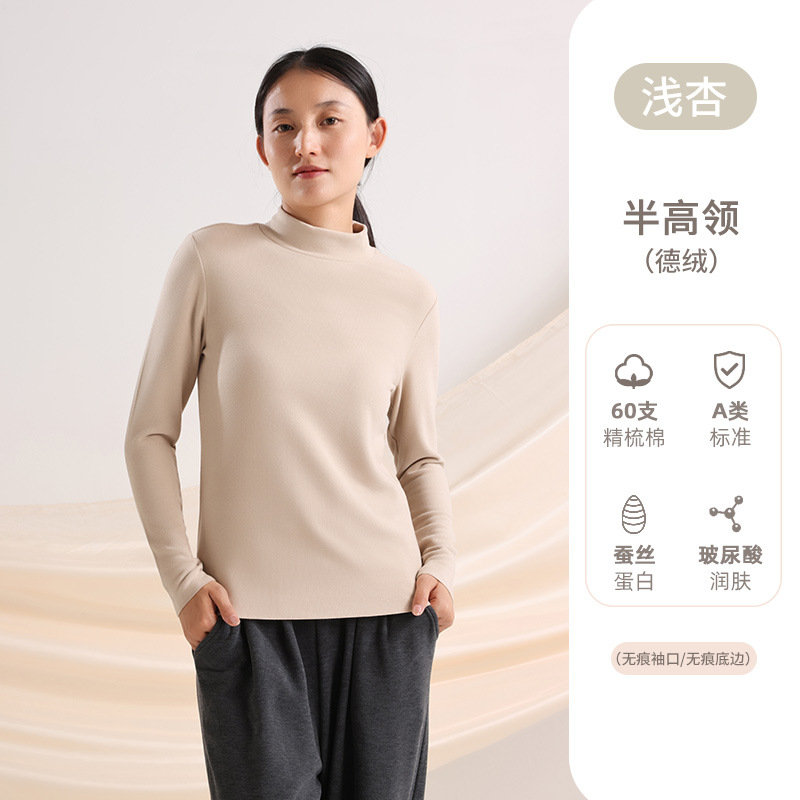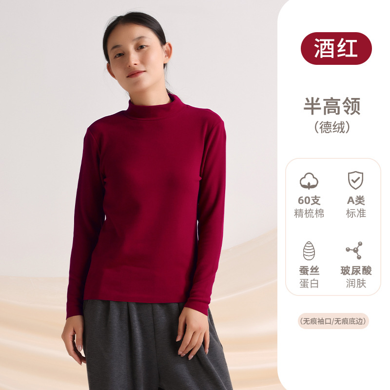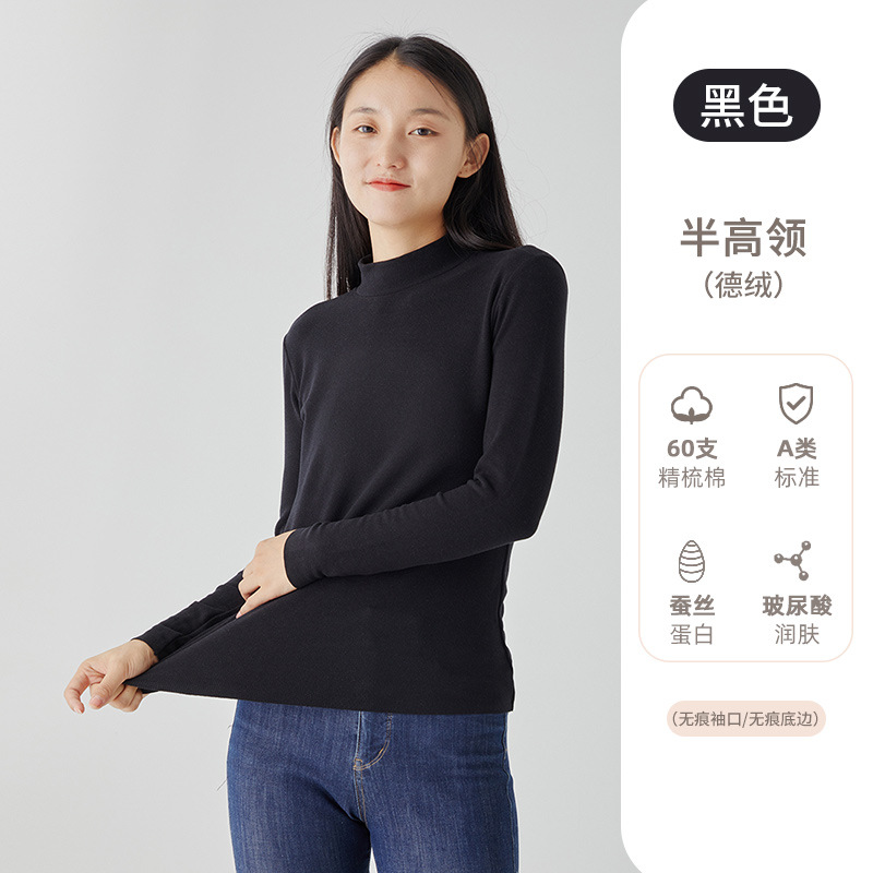 Теплый бесшовный топ из немецкого вельвета с воротником-стойкой для осени и зимы, с гиалуроновой кислотой для улучшения состояния кожи, облегающий, согревающий.