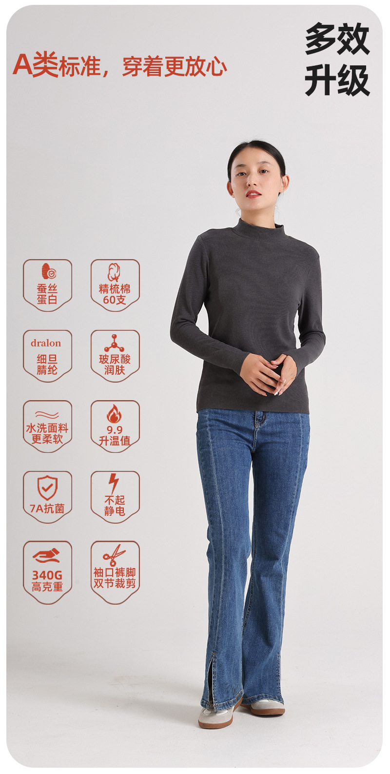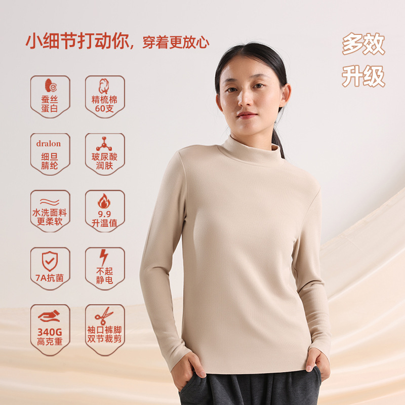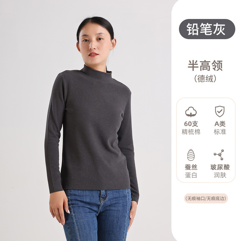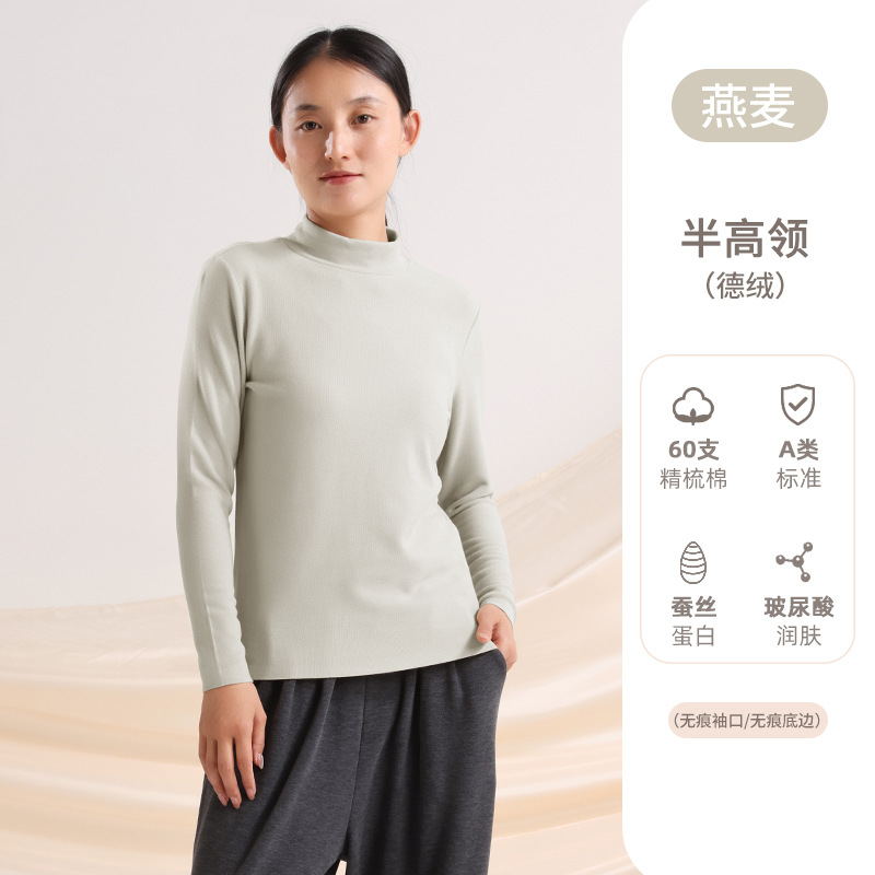 Теплый бесшовный топ из немецкого вельвета с воротником-стойкой для осени и зимы, с гиалуроновой кислотой для улучшения состояния кожи, облегающий, согревающий.