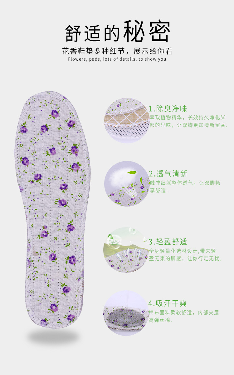 Стелька с фиолетовым цветком; черно-белая сетка; Маленькая Дейзи [Белая]; Стельки из апоцинума; Штамповка зеленой ткани; Штамповка синей ткани; Черная ткань перфорированная; рисовая сетка; черная сетка