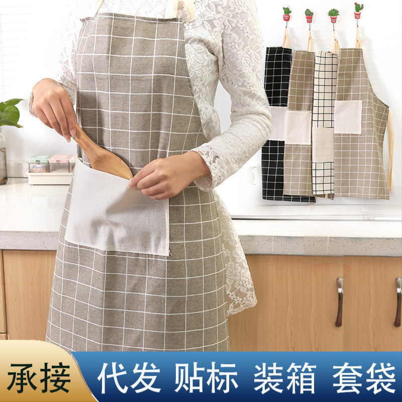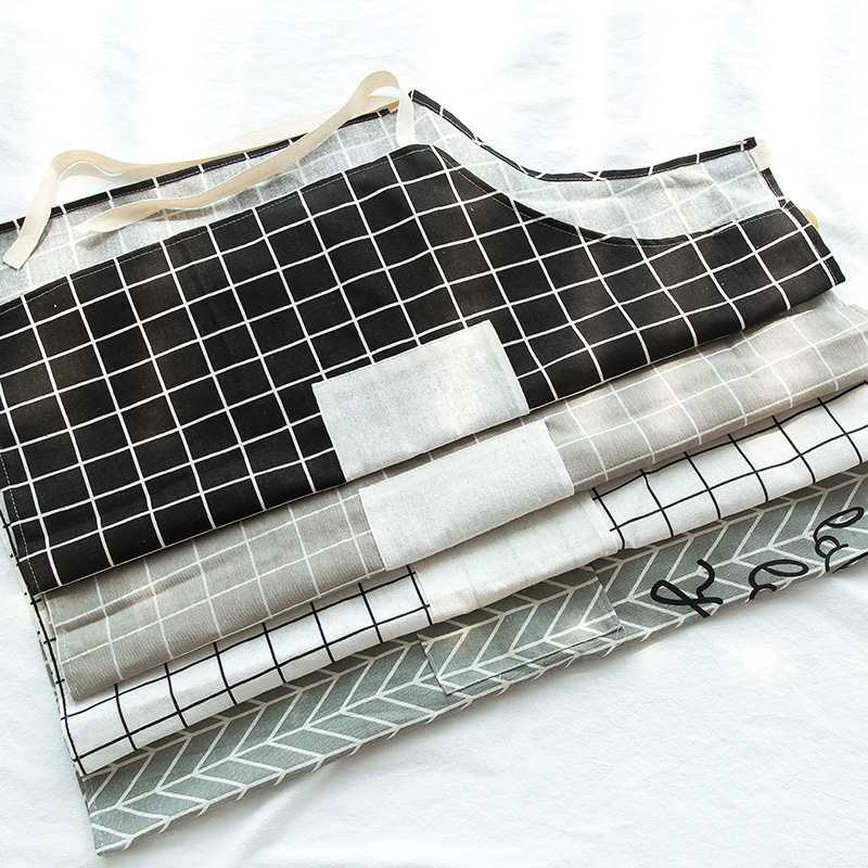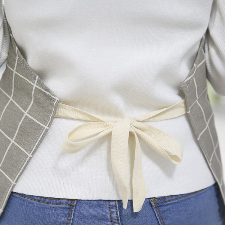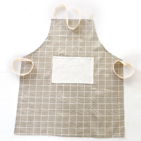 Фартук из хлопка и льна, новые непромокаемые комбинезоны без рукавов с защитой от обрастания, домашний кухонный фартук в клетку, воротник, фартук в японском стиле