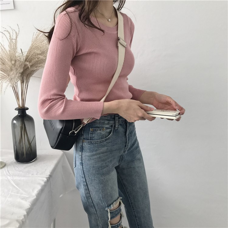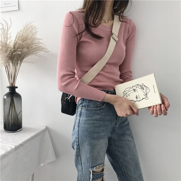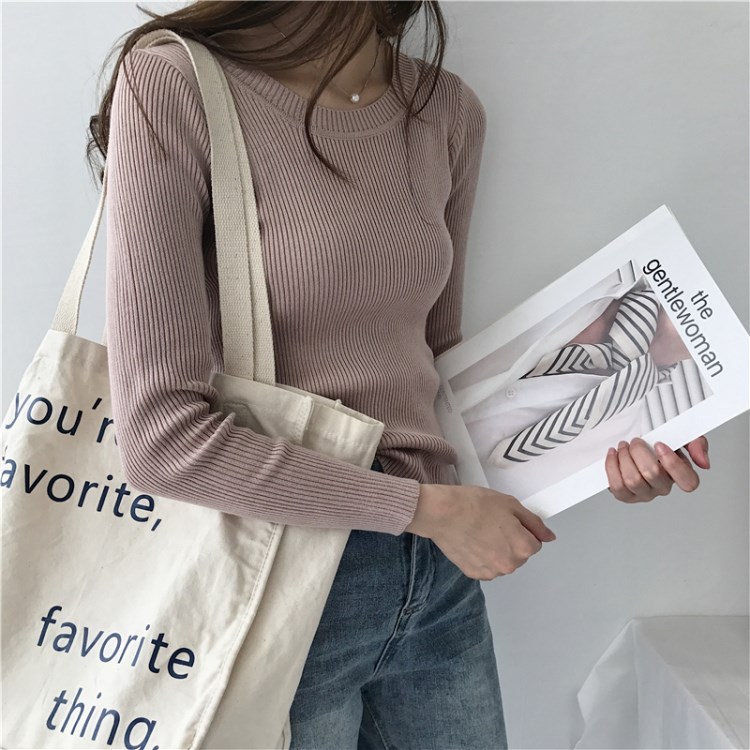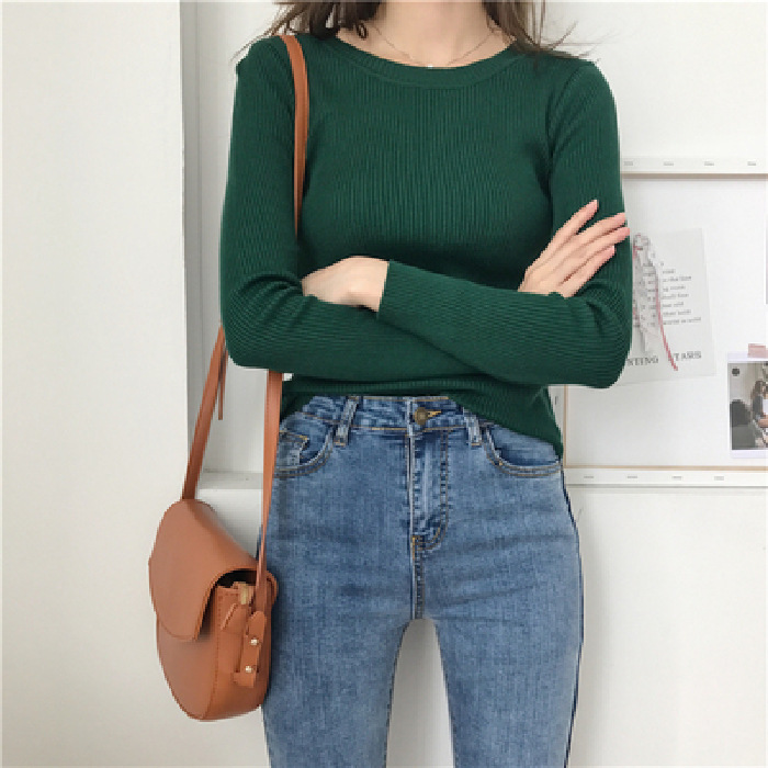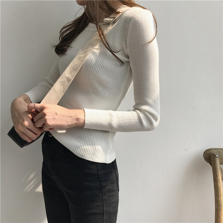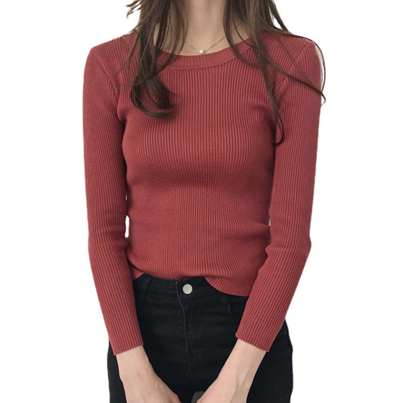 2023 Осенне-Зимний новый приталенный Универсальный пуловер в Корейском стиле с круглым вырезом в полоску, свитер, эластичная вязаная Базовая рубашка с длинным рукавом