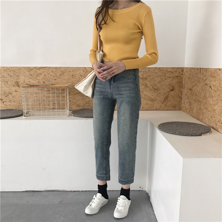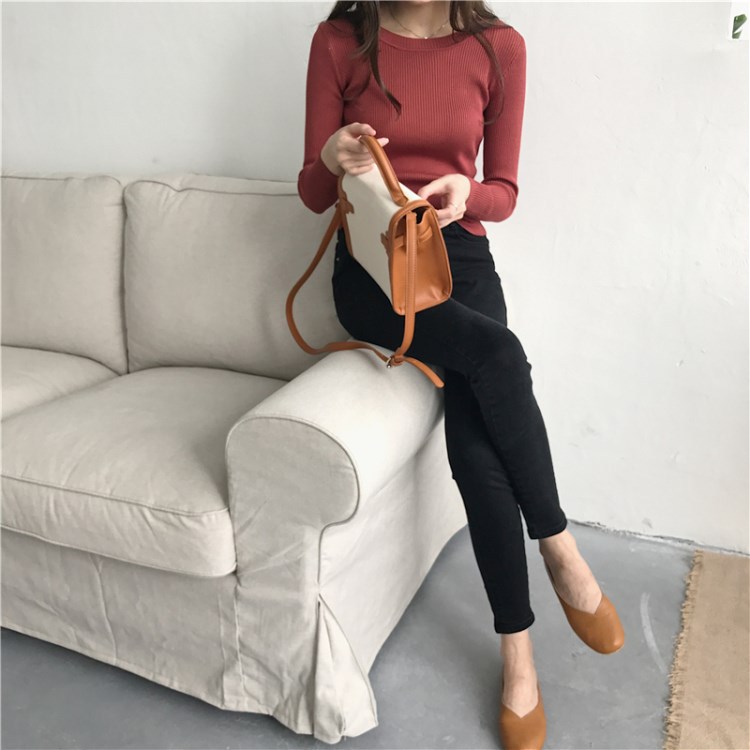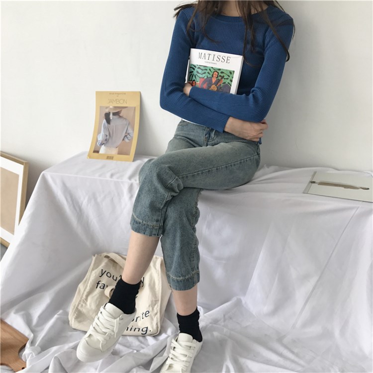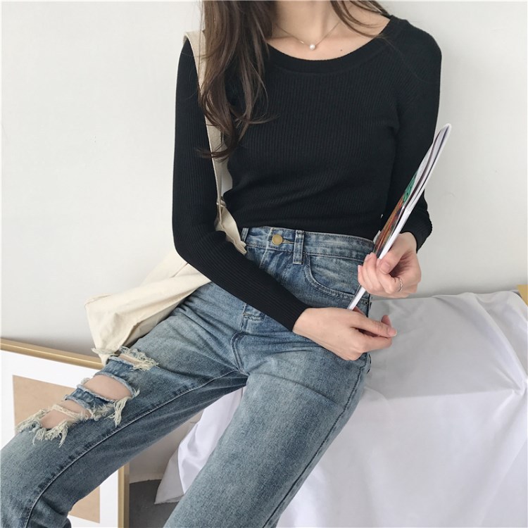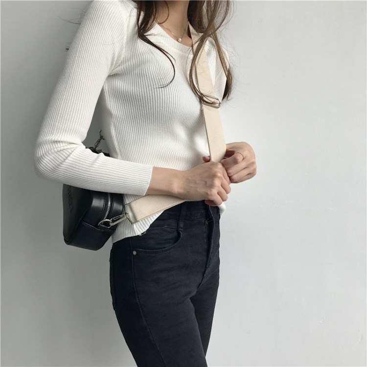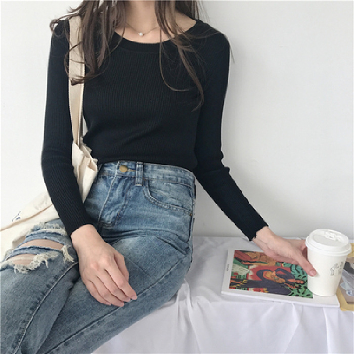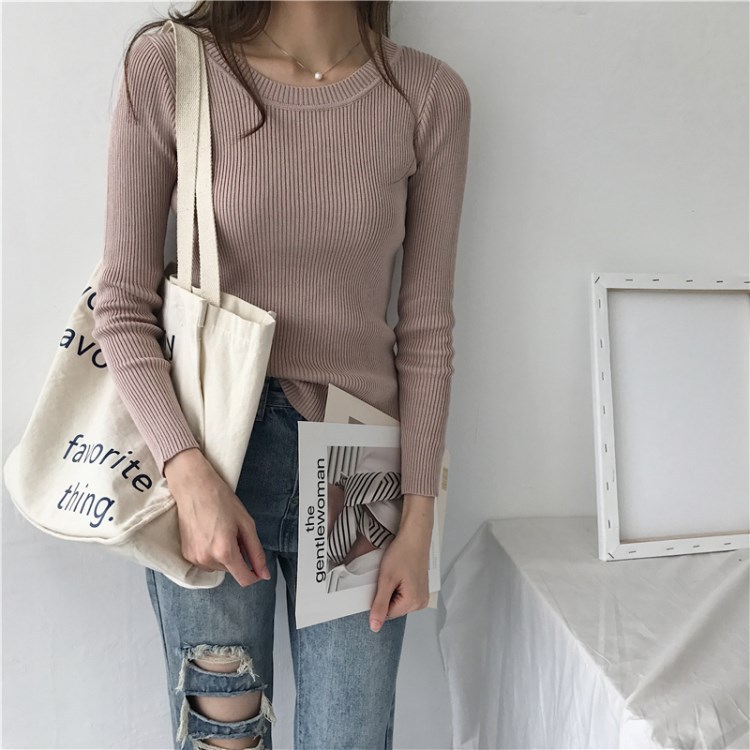 2023 Осенне-Зимний новый приталенный Универсальный пуловер в Корейском стиле с круглым вырезом в полоску, свитер, эластичная вязаная Базовая рубашка с длинным рукавом