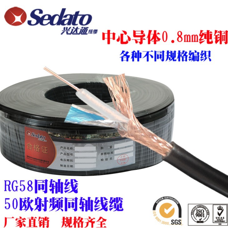 RG58 черный*1/0,8 мм проводник из бескислородной меди+алюминиевая оплетка 96/0,12 с медным покрытием+алюминиевая фольга; RG58 черный * 1/0,8 мм проводник из бескислородной меди + оплетка из чистой меди 96/0,08 + алюминиевая фольга; RG58 черный*19/0,18 мм луженый медный проводник + луженая медная оплетка 96/0,1 мм; RG58 черный*1/0,9 мм проводник из бескислородной меди + оплетка из чистой меди 96/0,1 мм + алюминиевая фольга; RG58 черный*19/0,18 мм луженый медный проводник + луженая медная оплетка 96/0,12 мм; RG58 черный*1/0,9 проводник из бескислородной меди+96/0,12 оплетка из чистой меди