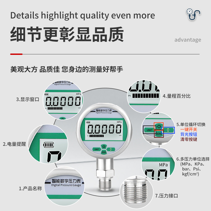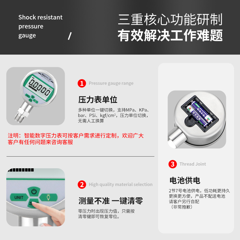 Интеллектуальный цифровой манометр YS80BF из нержавеющей стали, ударопрочный, для измерения вакуума, давления воды, гидравлического давления, давления масла, 1.6 м