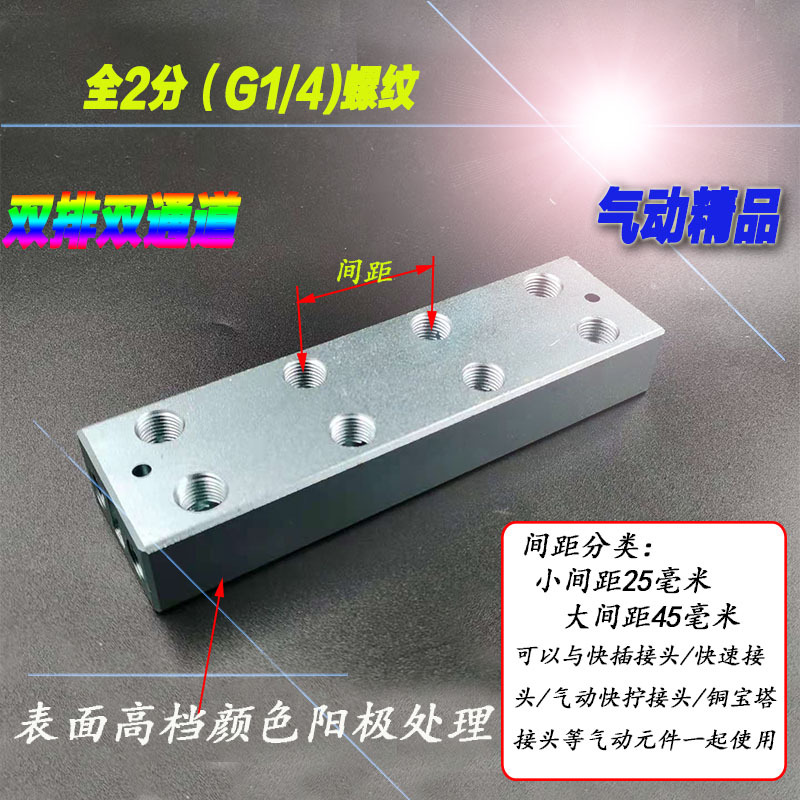 Двухрядный многоканальный шунт, выхлопной дренажный ряд, полный 2-минутная автобусная пластина, распределитель соединения газового блока, утолщенный алюминиевый блок
