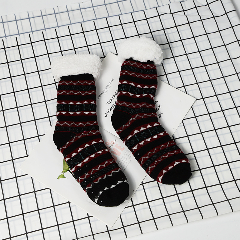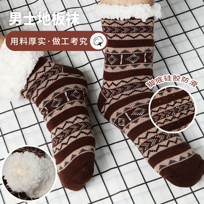 Зимние мужские носки из толстой шерсти на флисовой подкладке, нескользящие носки до середины икры, носки для дома, ковровые носки