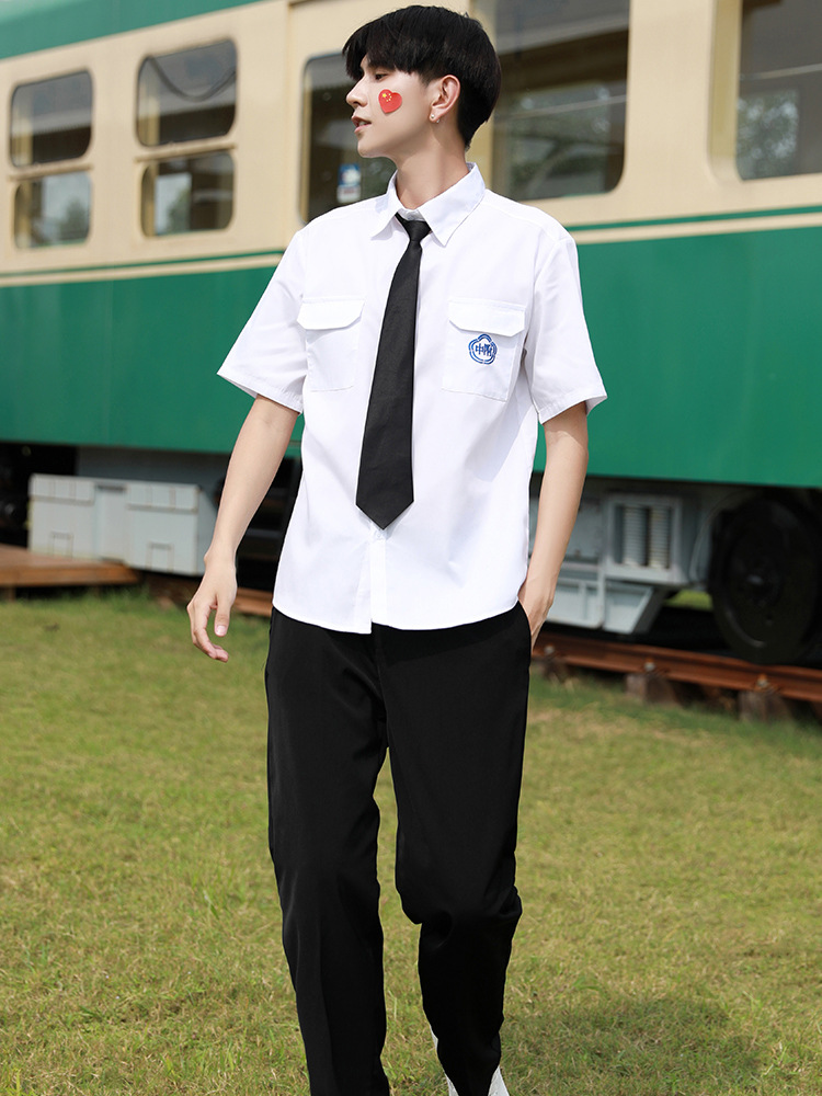 [A Xin Тайваньский педагогический университет, вышитая рубашка в том же стиле для средней школы] Классная форма JK Мужская и женская классная форма с короткими рукавами и длинными рукавами