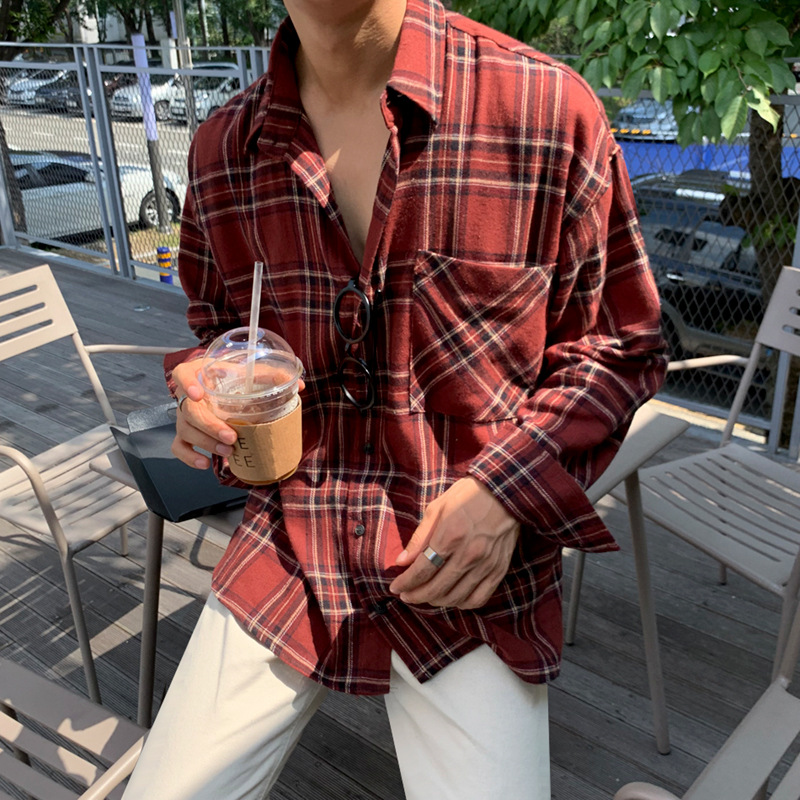 Новая Осенняя рубашка MYQ в клетку, Мужская модная свободная Корейская рубашка с длинными рукавами, Повседневная рубашка, универсальная куртка