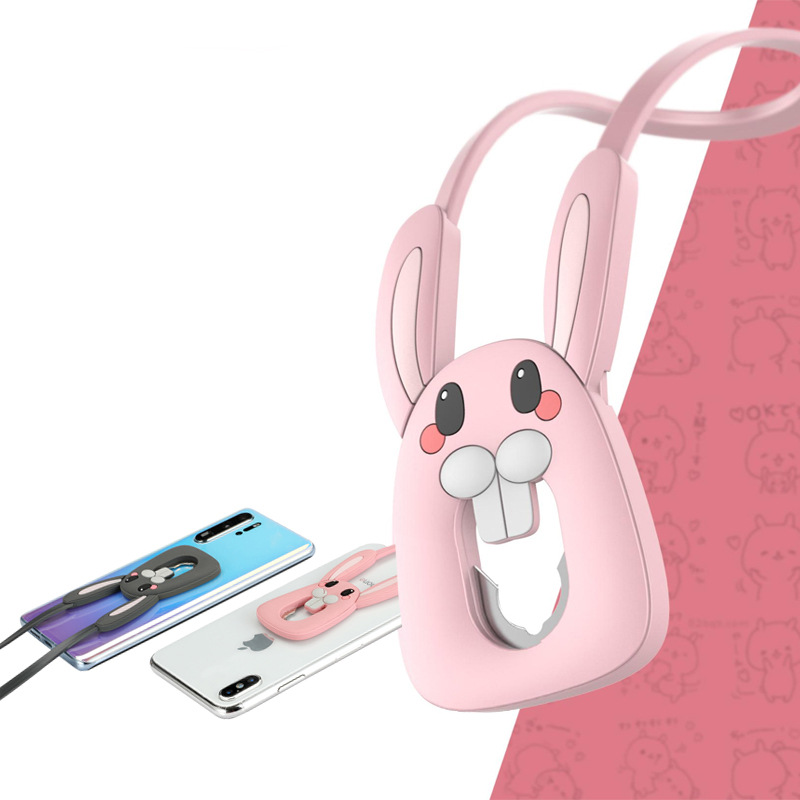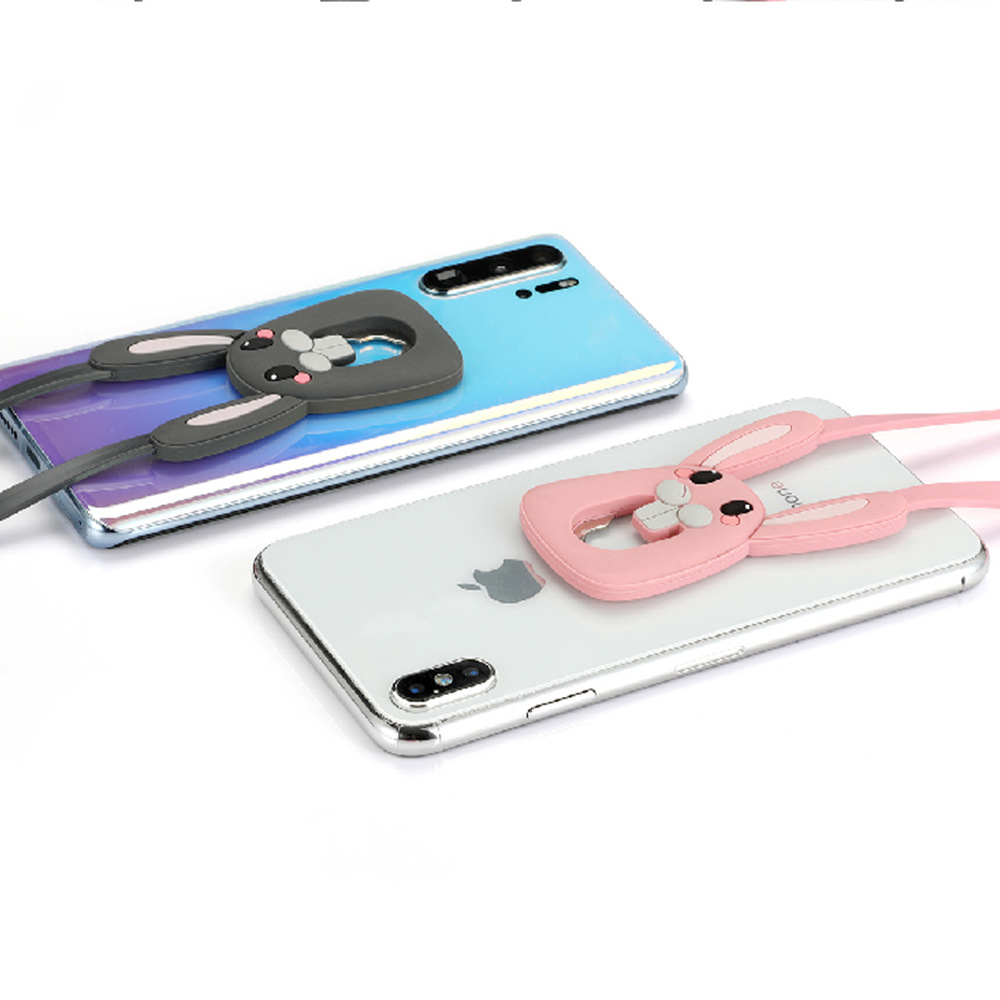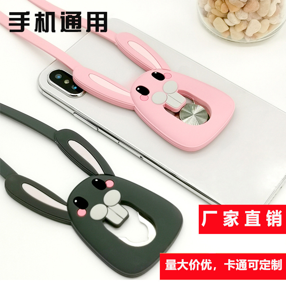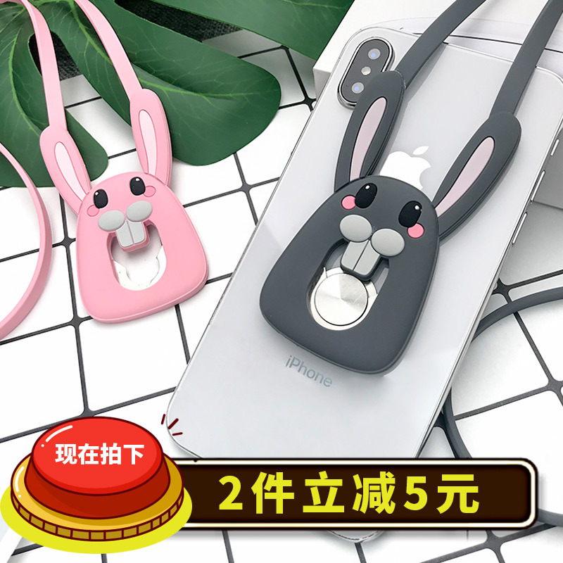 卡通兔子牙硅胶手机绳挂脖子可拆卸防丢防摔无孔手机壳挂绳粘贴