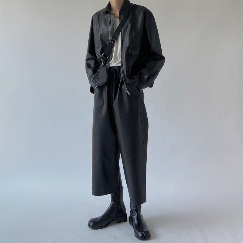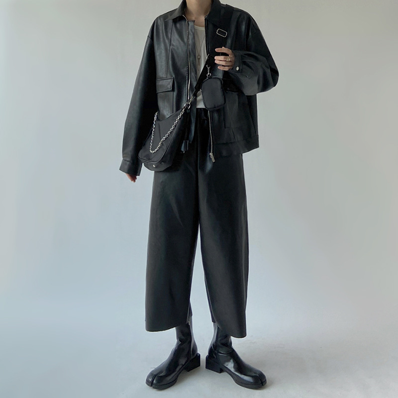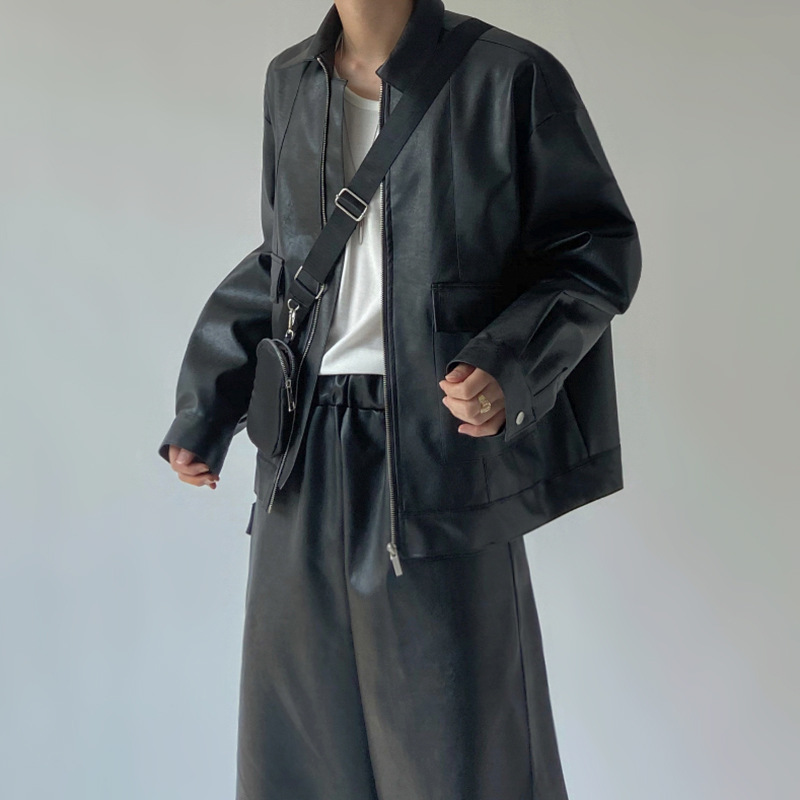 Осенняя кожаная мужская Свободная велосипедная одежда MYQ с лацканами в Корейском стиле, модная брендовая винтажная кожаная куртка-Авиатор, модное пальто
