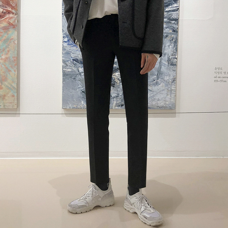 Мужские драпированные брюки MYQ, мужское черное платье в Корейском стиле, приталенные повседневные укороченные брюки, облегающие Костюмные брюки