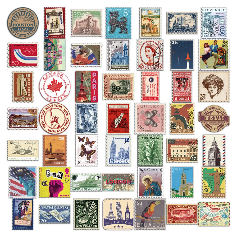 50 ретро дорожных штампов Наклейки Пакет Ностальгический почтовый штемпель серия Журнал Дневник DIY материал декоративные наклейки
