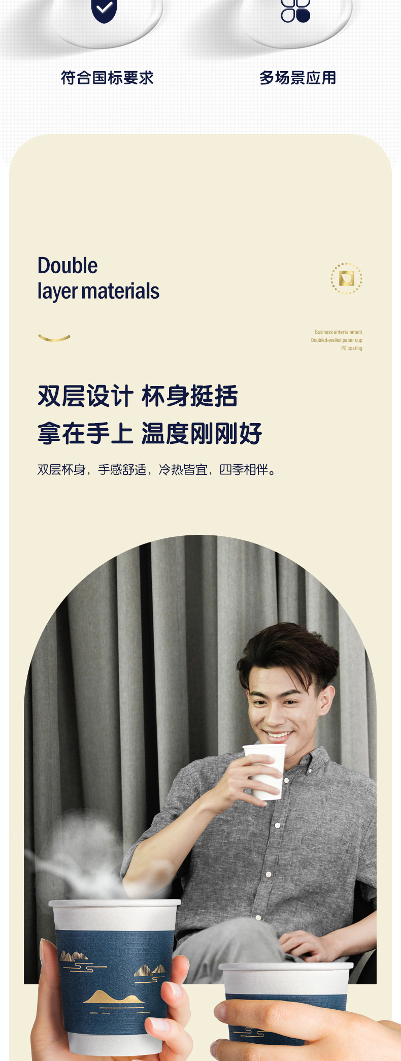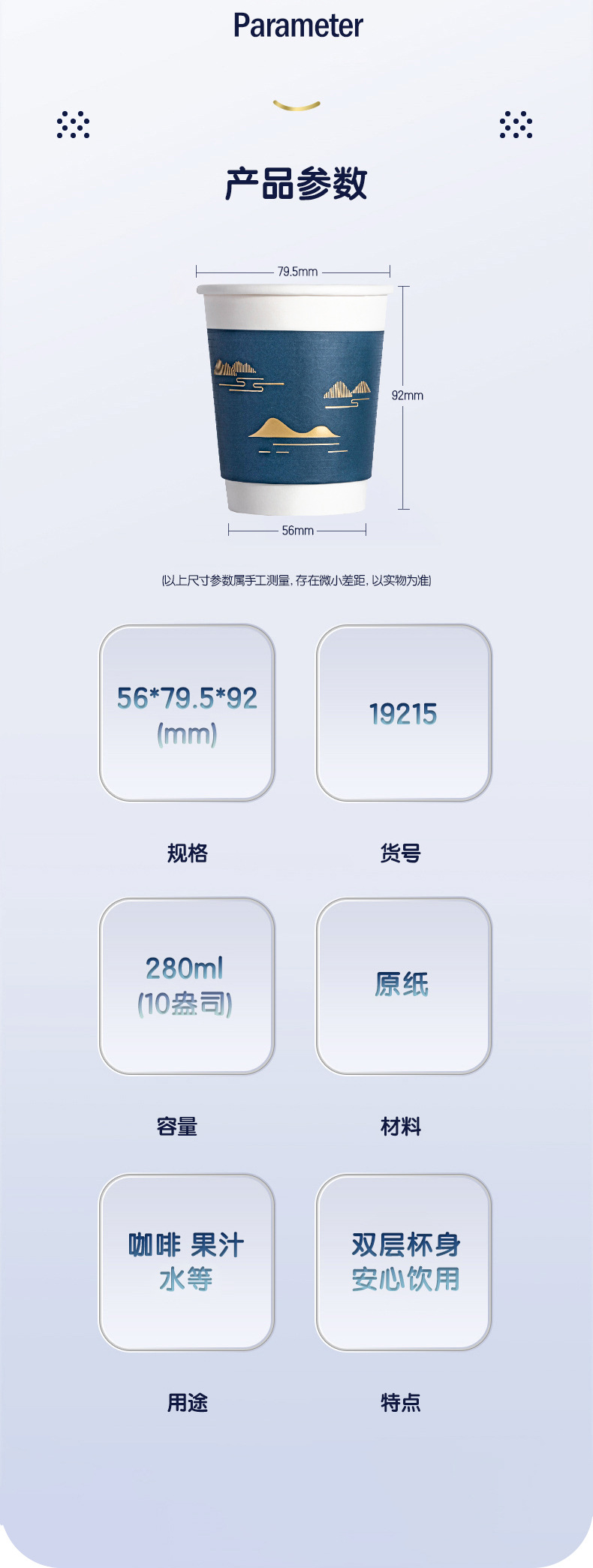 [Оптовая] Deli 19215 Двухслойный бумажный стаканчик 280 мл Утолщенный бумажный одноразовый Бумажный стаканчик 50 для офисного и домашнего использования
