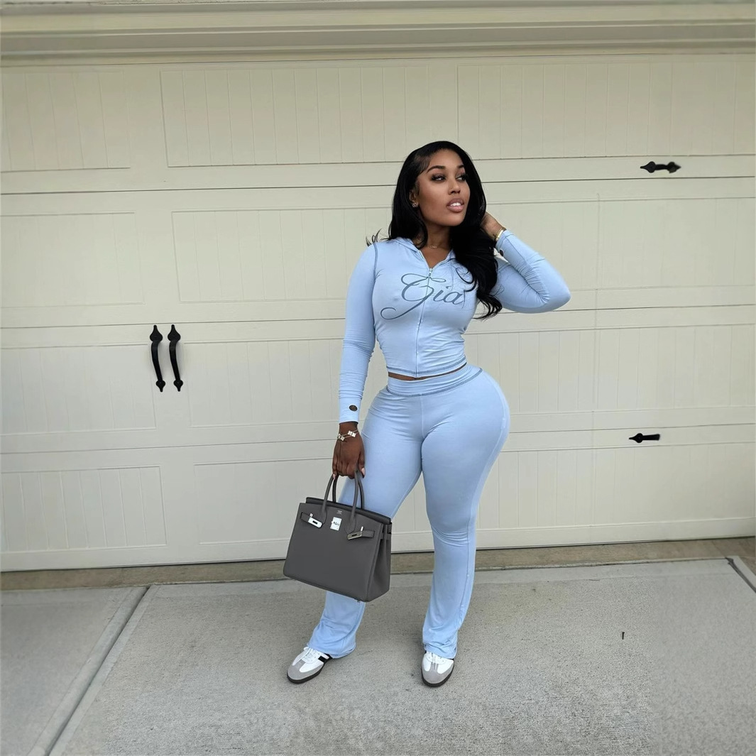 Модный летний комплект 2025: укороченный топ с капюшоном и облегающие брюки однотонного цвета для женщин (тренд Amazon)