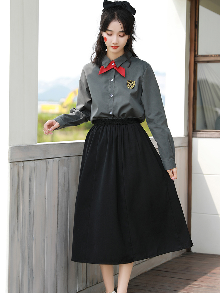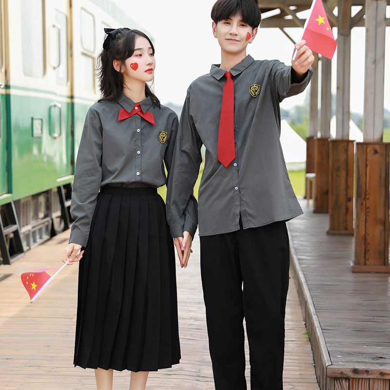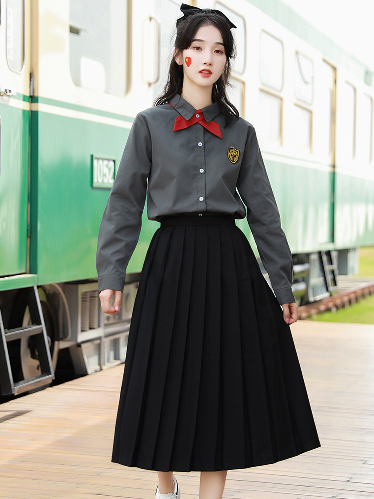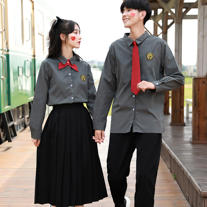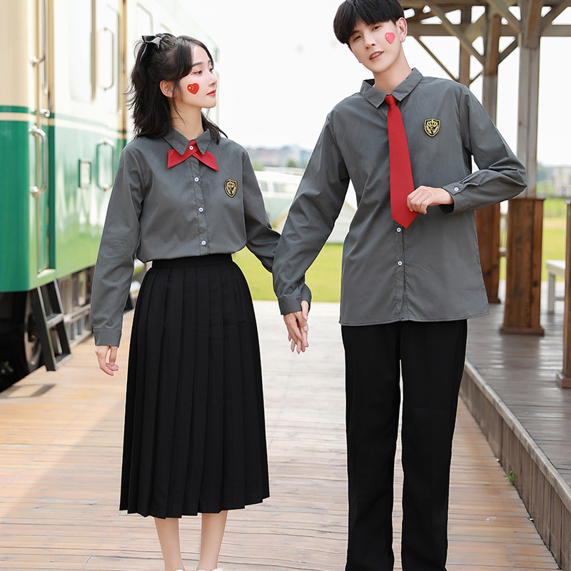 Осенний студенческий стиль Корейская форма для выпускных классов ins Спортивная школьная форма для встреч костюм серая рубашка Длинная юбка костюм студента средней школы