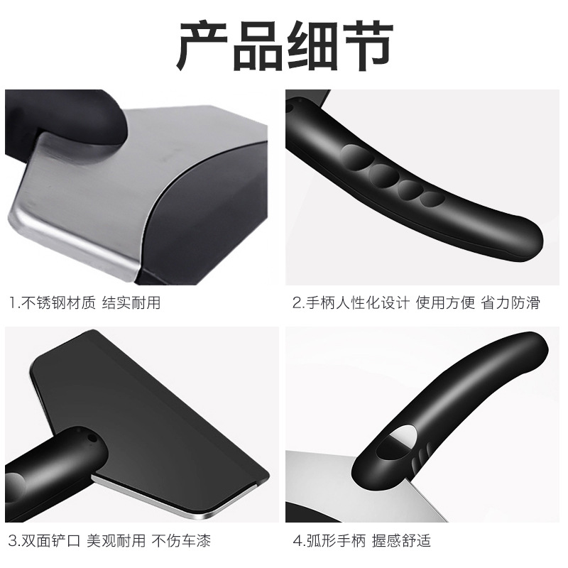 【品名】:不锈钢汽车冰雪铲 【材质】:ABS+不锈钢 【颜色】:黑色 【尺寸】:如图所示 【重量】:60g(含包装) 【包装】:OPP袋装 【包装尺寸】:20*12cm 【装箱数】:400/件 【适用范围】:通用 |