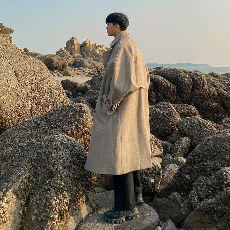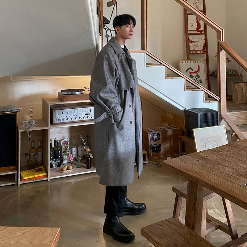 MYQ корейское шерстяное пальто, мужское длинное Трендовое красивое плащ, осенне-зимняя утолщенная шерстяная ветровка с винами