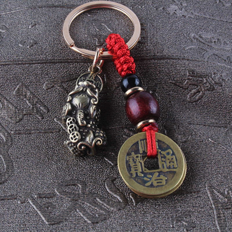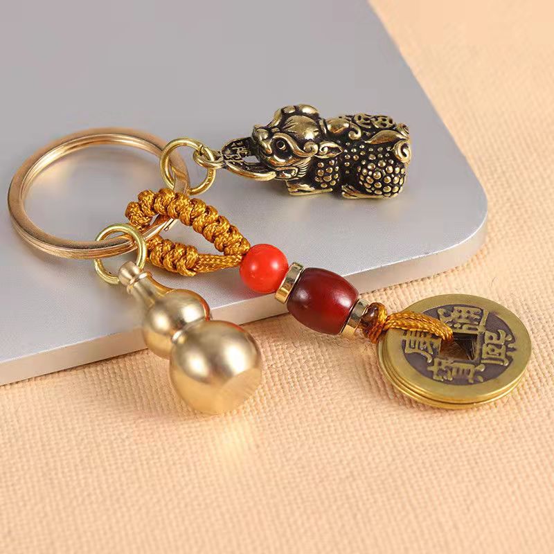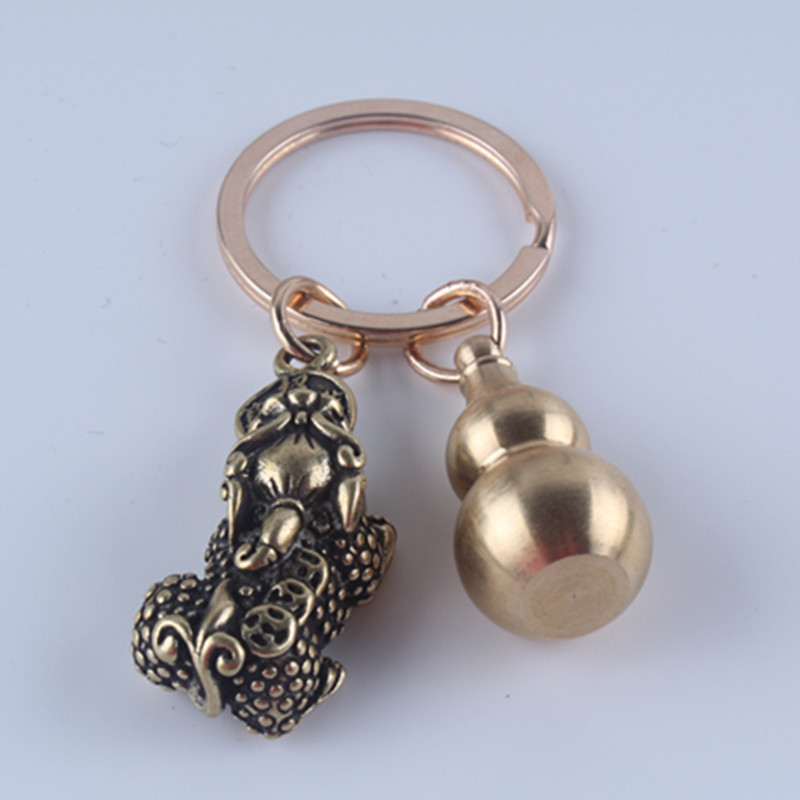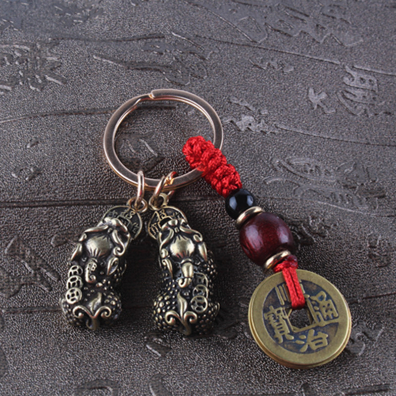 Полая верхняя крышка открытая медная Зодиак Тыква укус деньги Двойной счастливый Храбрый пять император деньги можно загрузить тканый брелок из киновари