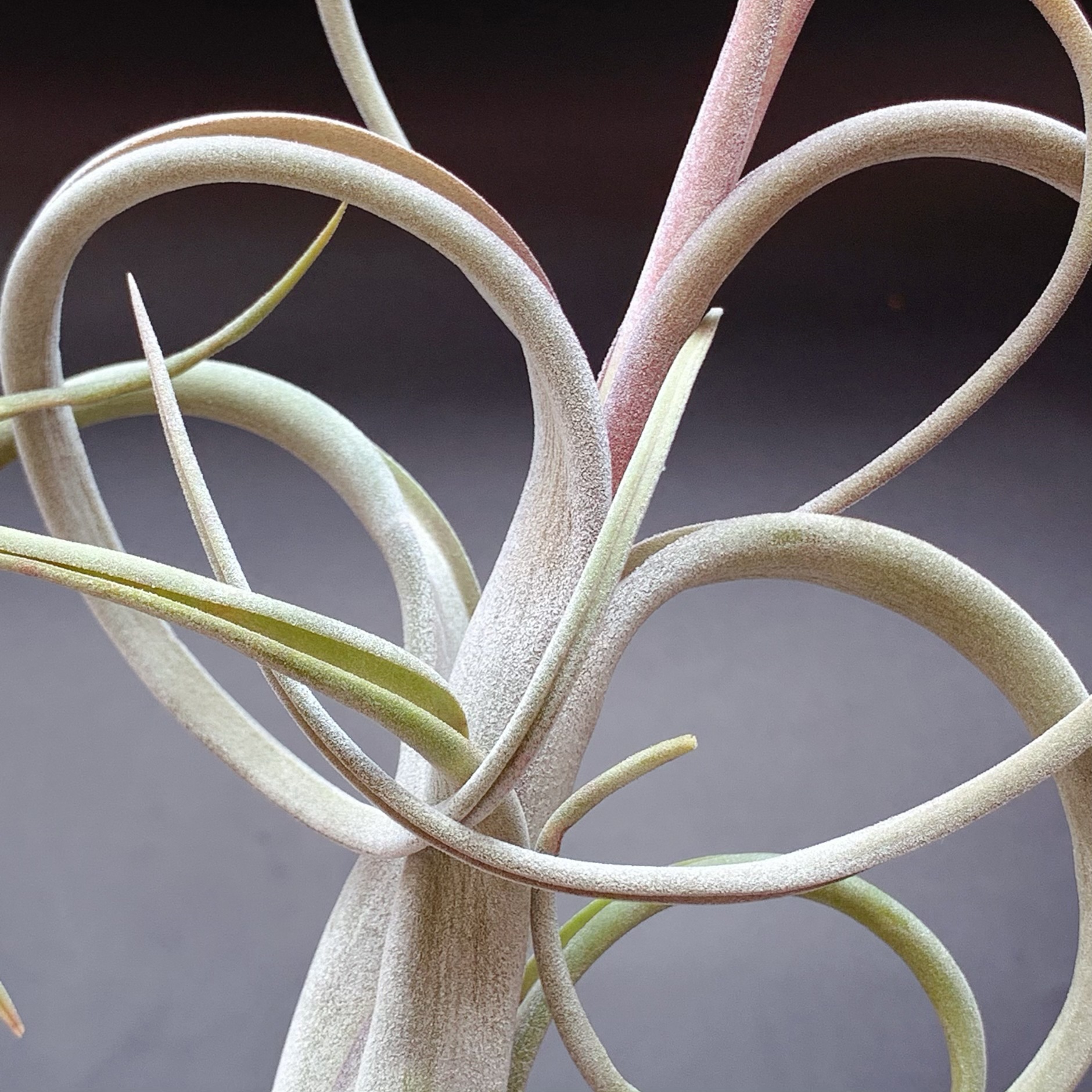它有坚硬的灰色叶片,尖端卷曲,有着壶腹般的基部。