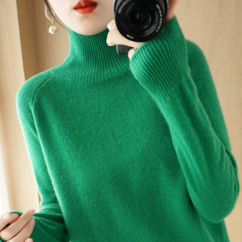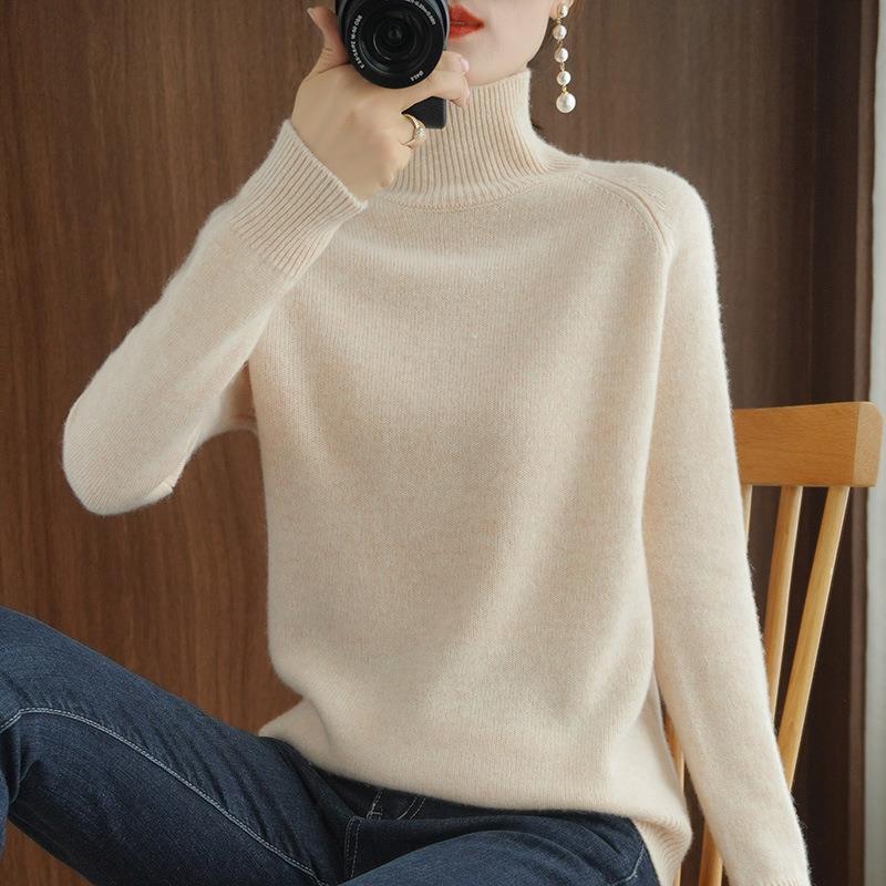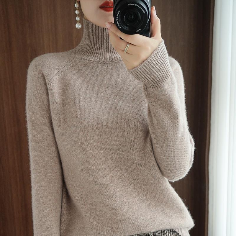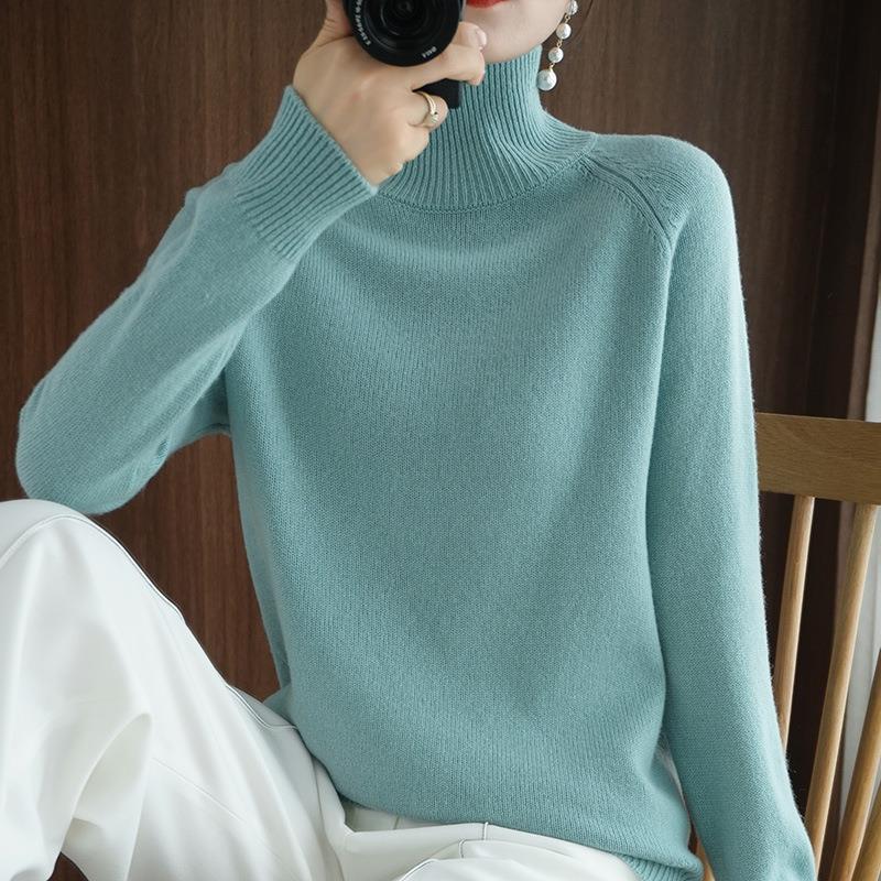 Женский свитер с высоким воротником, осень-зима 2024, корейский стиль, однотонный пуловер, свободная трикотажная базовая рубашка с длинными рукавами, универсальная.