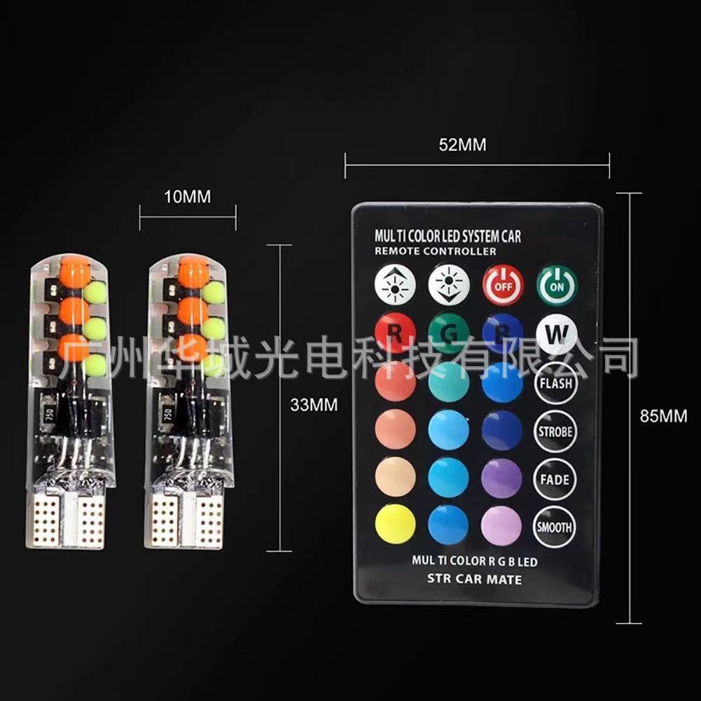 T10 COB RGB Автомобильный светодиодный светильник шириной красочный с дистанционным управлением ширина вспышки свет водонепроницаемый силиконовый светильник для номерного знака