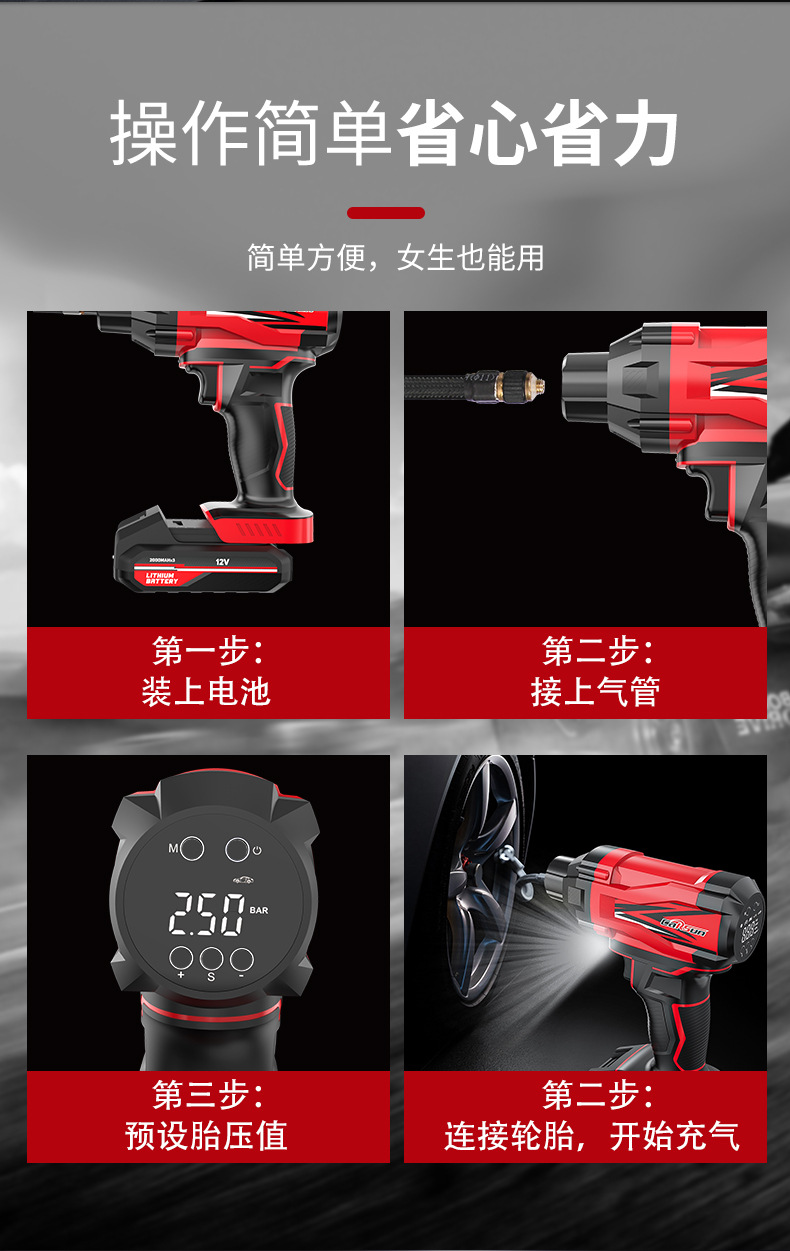 Автомобильный беспроводной воздушный насос Автомобильный воздушный насос Автоматическая зарядка и остановка Портативный ручной воздушный насос для автомобильных шин
