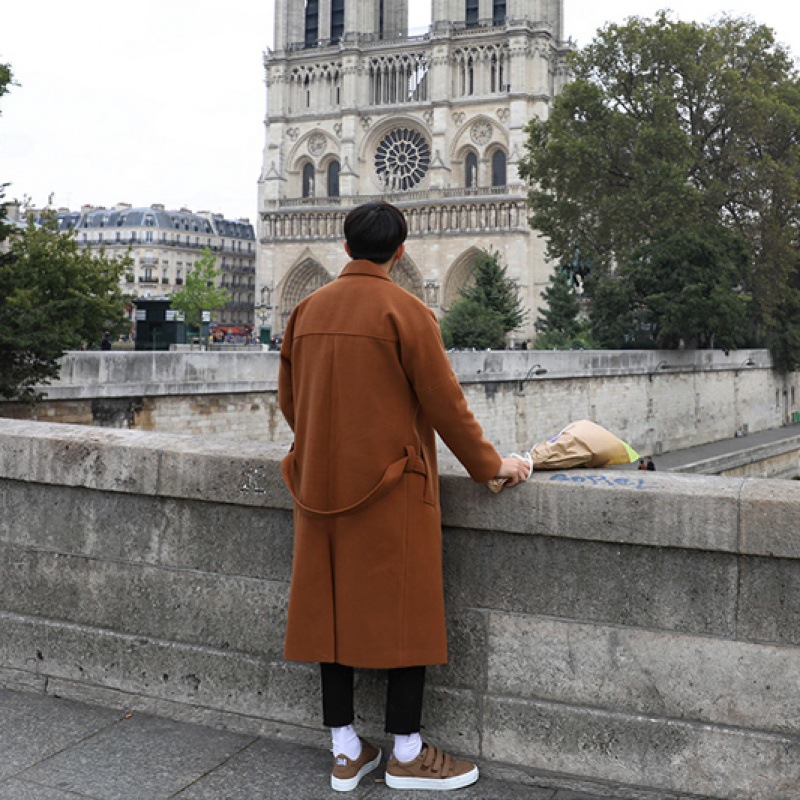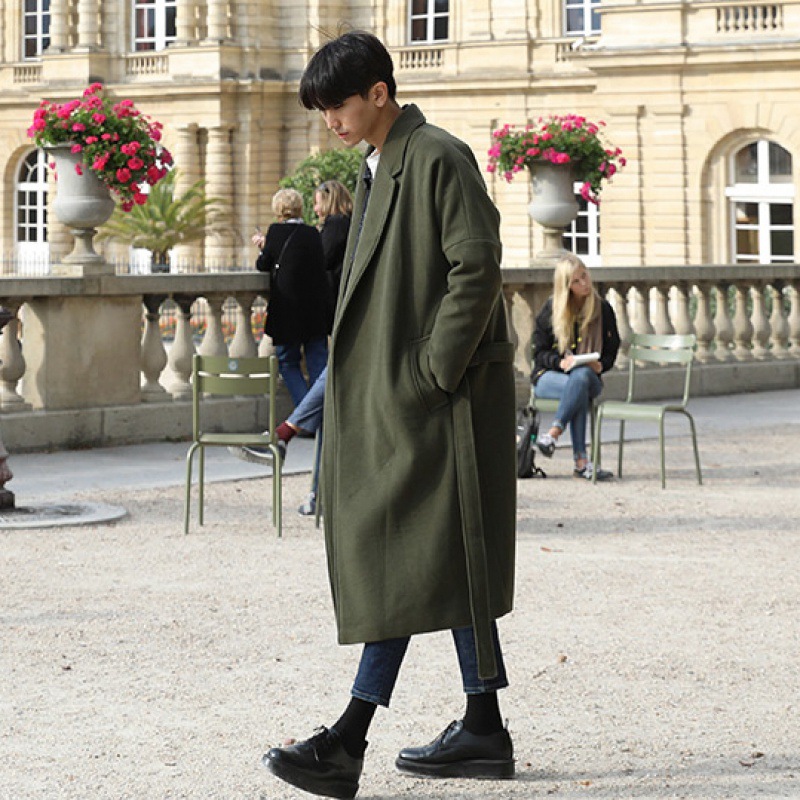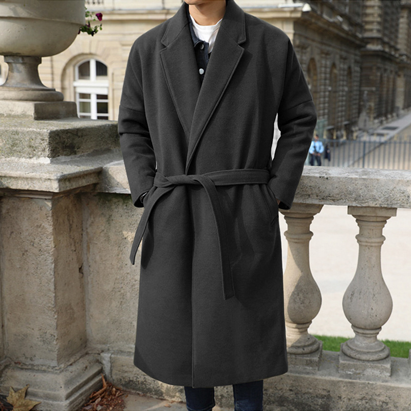 Плащ MYQ в японском стиле, мужское длинное толстое теплое шерстяное пальто, мужское модное свободное шерстяное пальто в Корейском стиле