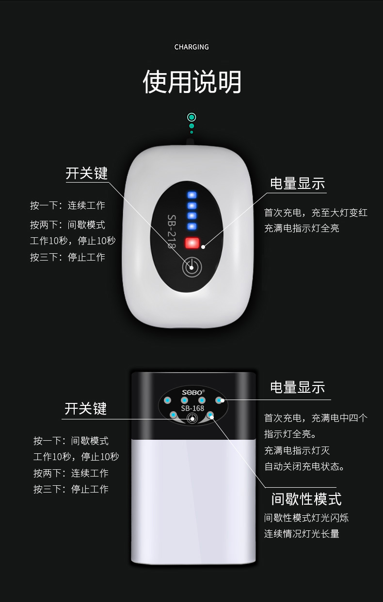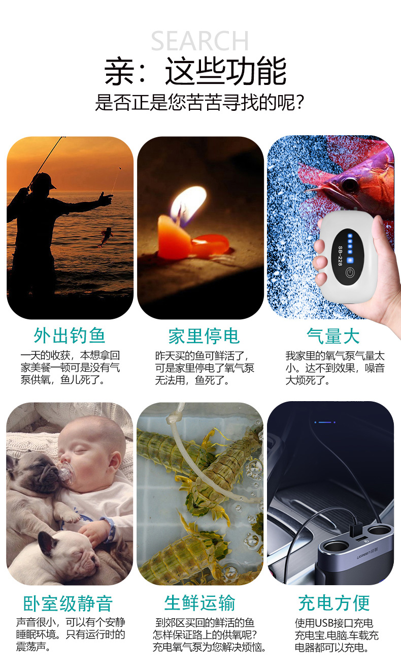 Songbao кислородный насос перезаряжаемая литиевая батарея Рыбалка двойного назначения Открытый USB маленький портативный ультра-тихий