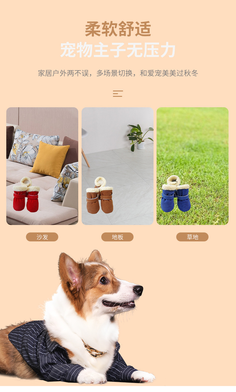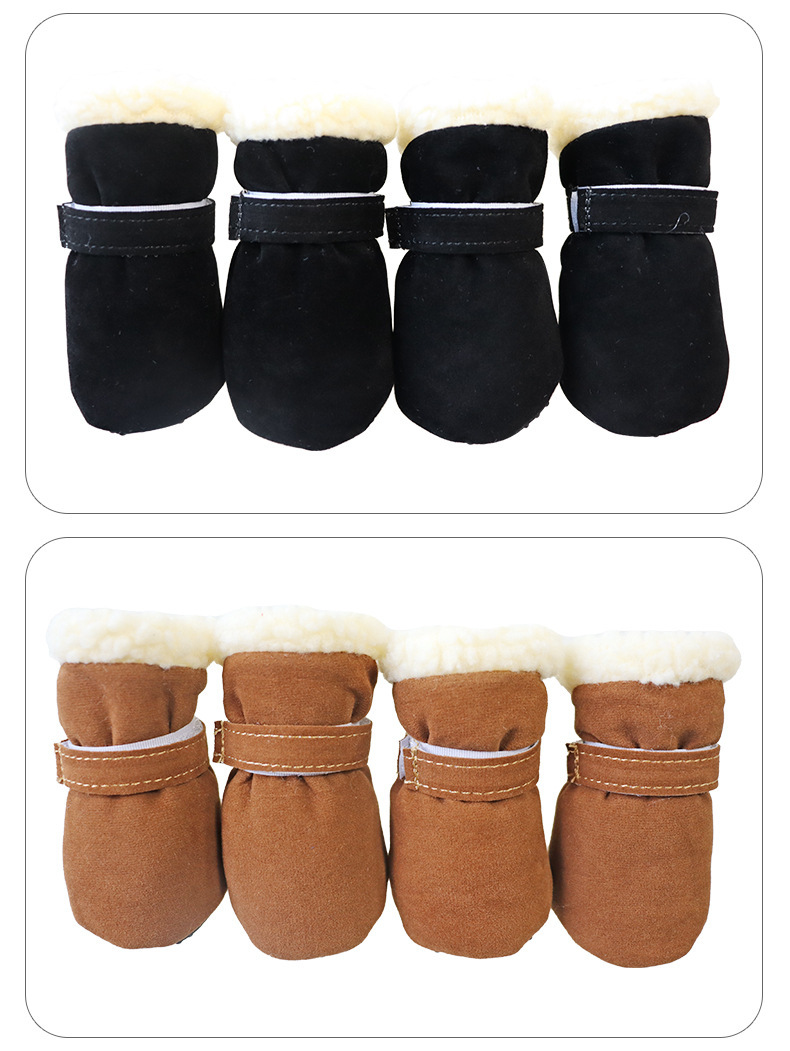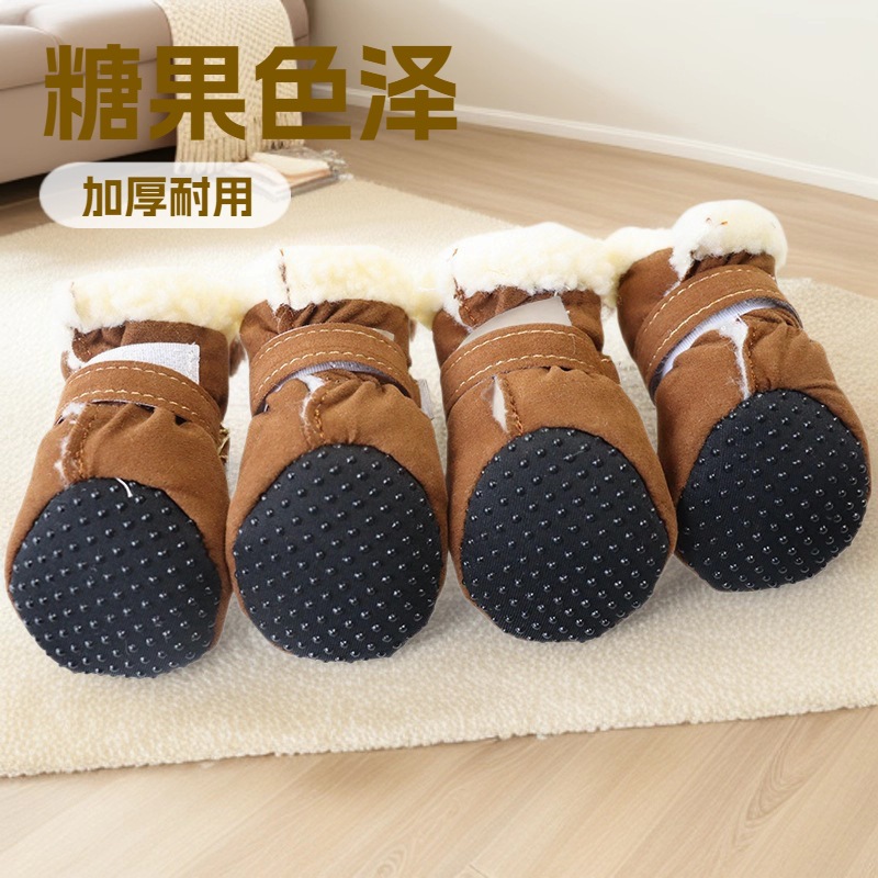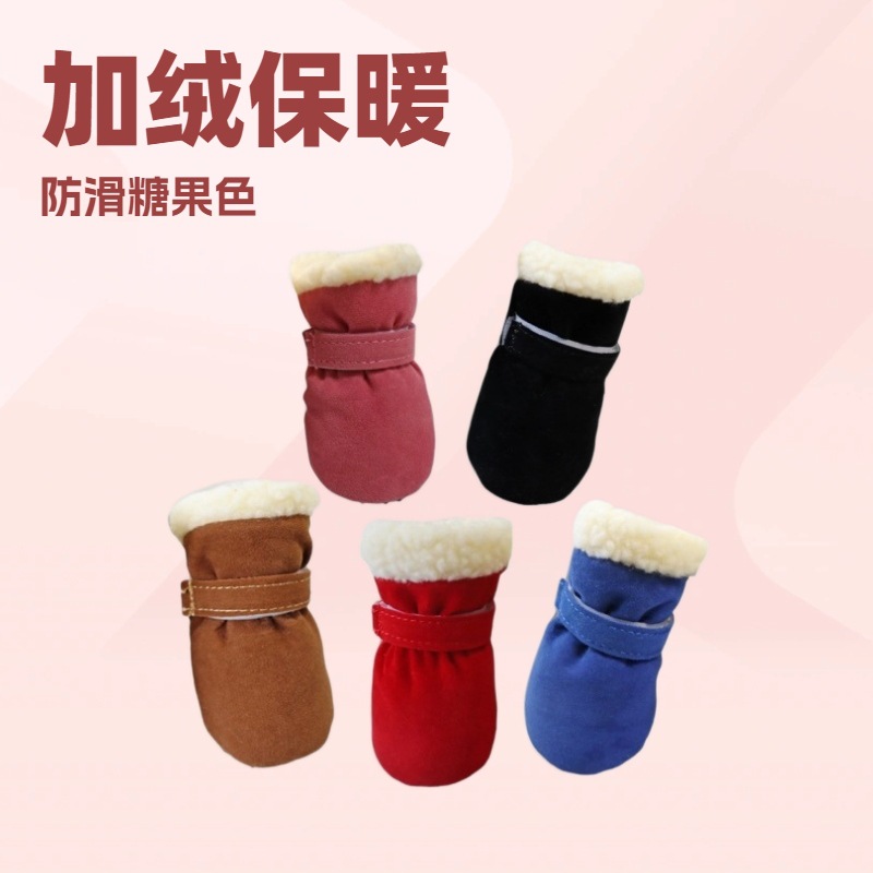 Сапоги для домашних животных с плюшевой подкладкой, теплые, на мягкой подошве, защищающие от холода и ветра, комбинированные в ярких цветах, с противоскользящей защитой для лап, доступны в различных цветах.
