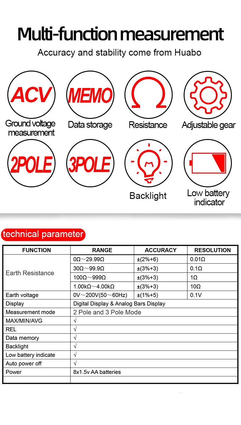 Измеритель сопротивления заземления HABOTEST HT2302 (заводской магазин)