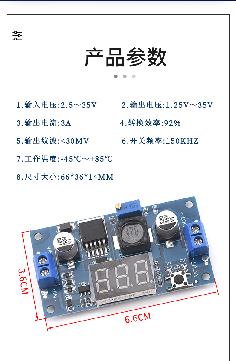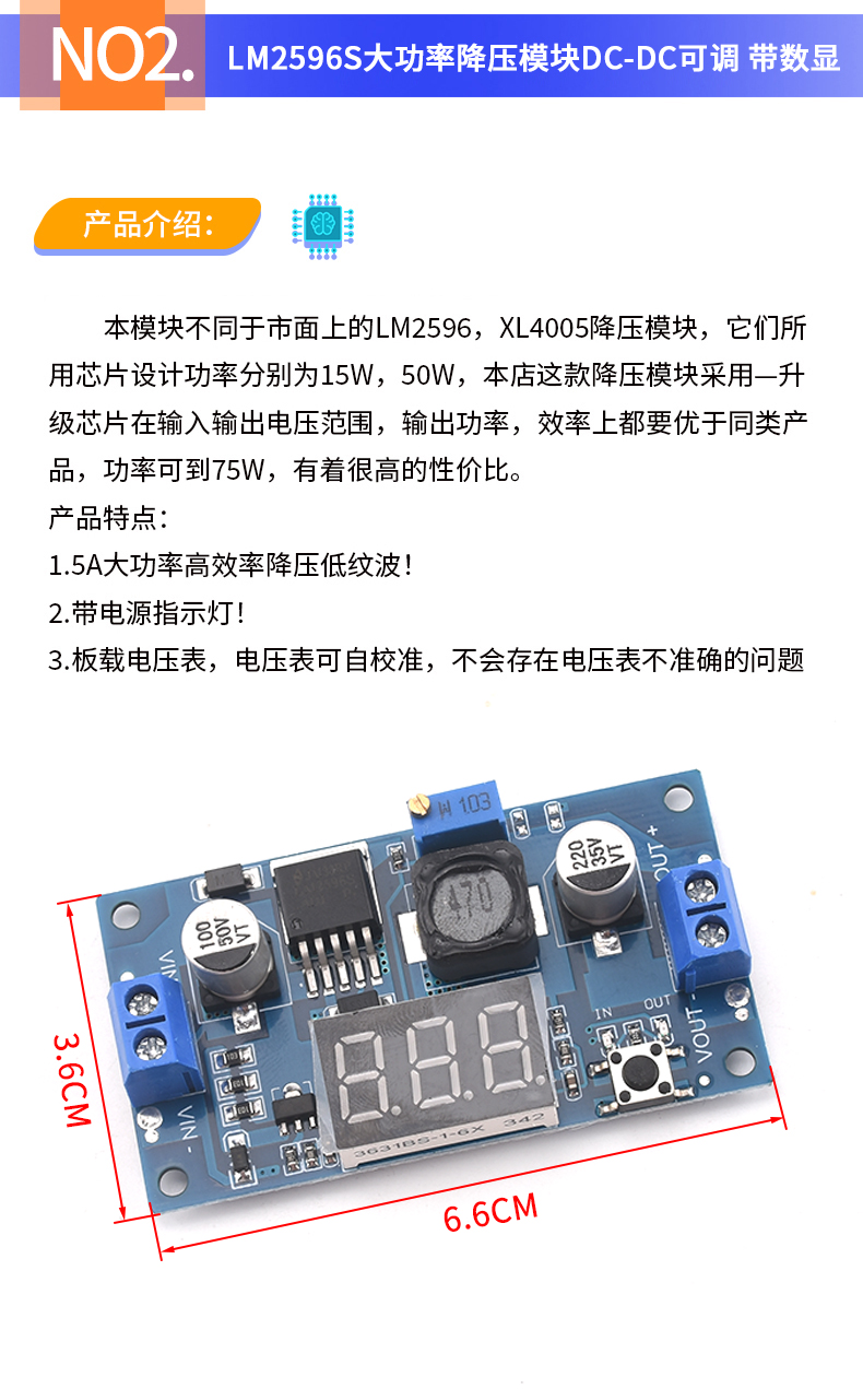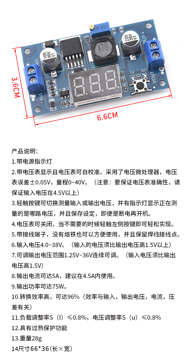 LM2596 Регулируемый понижающий модуль постоянного тока с цифровым дисплеем