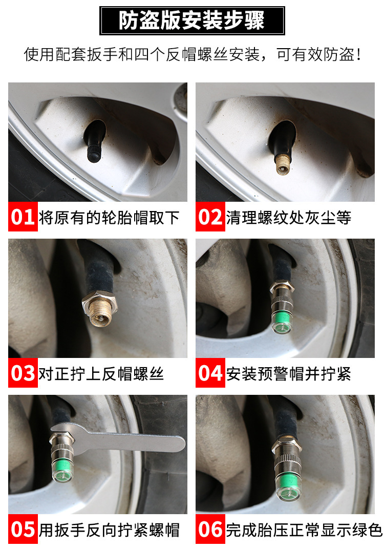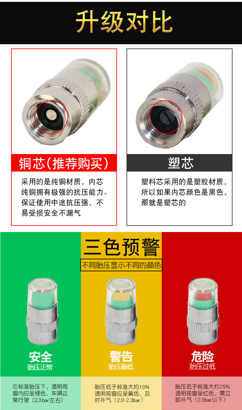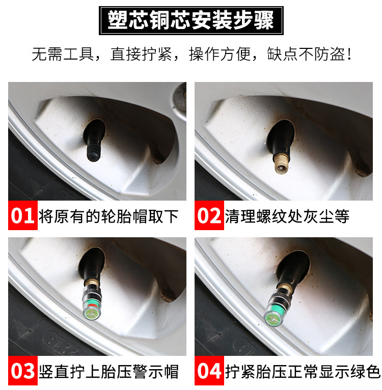 Производитель поставляет автомобильные колпачки клапанов контроля давления в четырех шинах, латунные предупреждающие колпачки давления в шинах, автомобильные аварийные принадлежности.