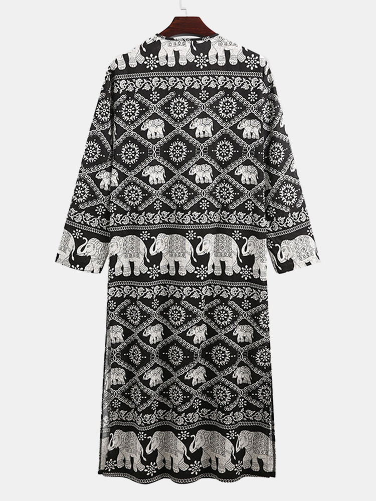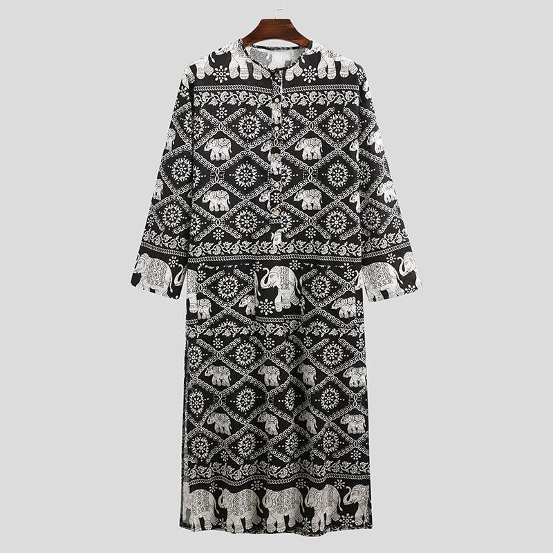 Мусульманский мужской Халат европейский и американский Повседневный Свободный комбинезон с принтом слона в этническом стиле с длинным рукавом