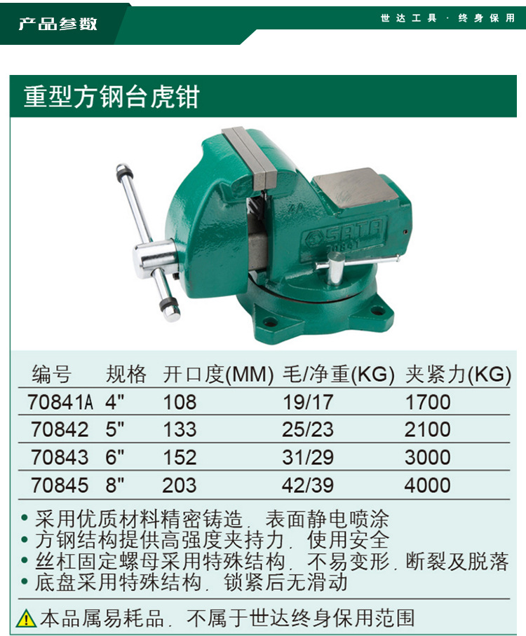 Шида 70841 тяжелый квадратный стальной тиски тиски тиски плоские тиски
