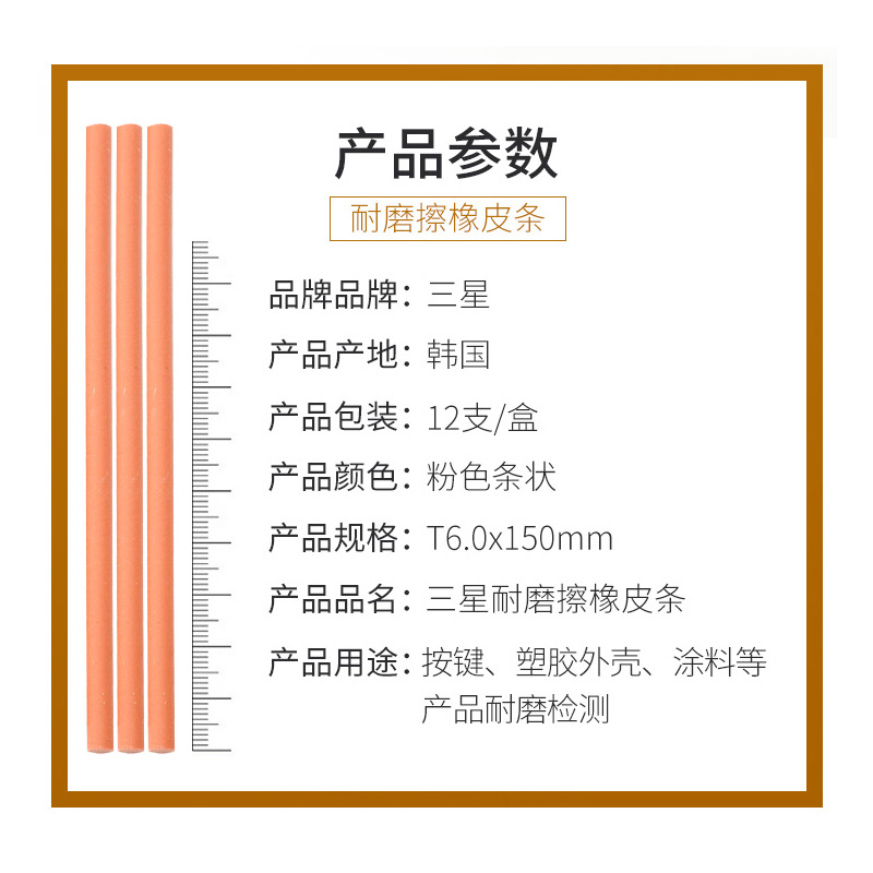 韩国HAESUNG三星耐磨测试橡皮,韩国Minoan耐磨橡皮,索尼耐磨测试橡皮,韩国Rubber ERASER测试橡皮条,是耐磨试验机用于喷涂产品表面涂层或镀层的耐磨测试,