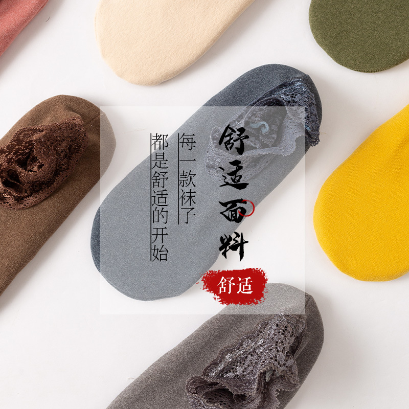 Носки женские носки-лодочки бархатные осенне-зимние теплые трубчатые силиконовые Нескользящие толстые кружевные зимние носки в пол