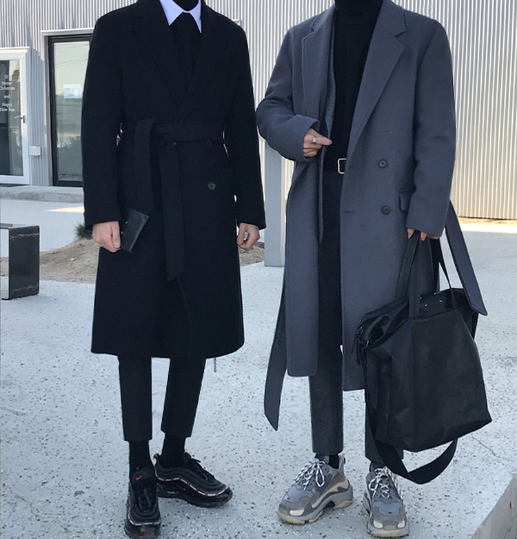 [Большая распродажа] Зимняя шерстяная верхняя одежда средней длины в корейском стиле, утолщенная теплая шерстяная верхняя одежда, мужская двубортная модная верхняя одежда