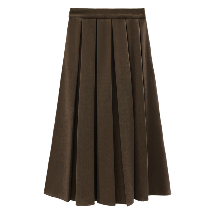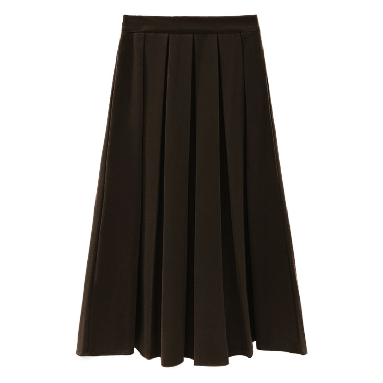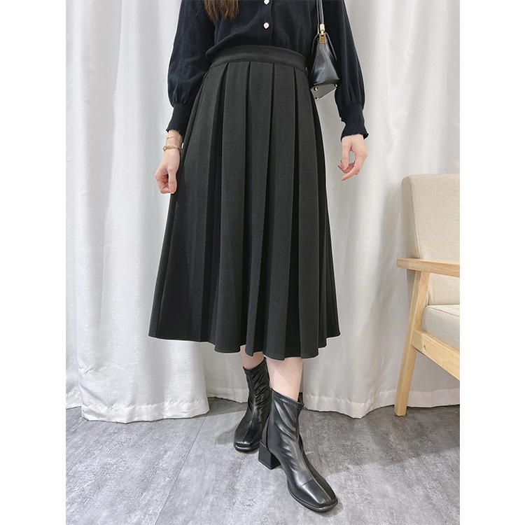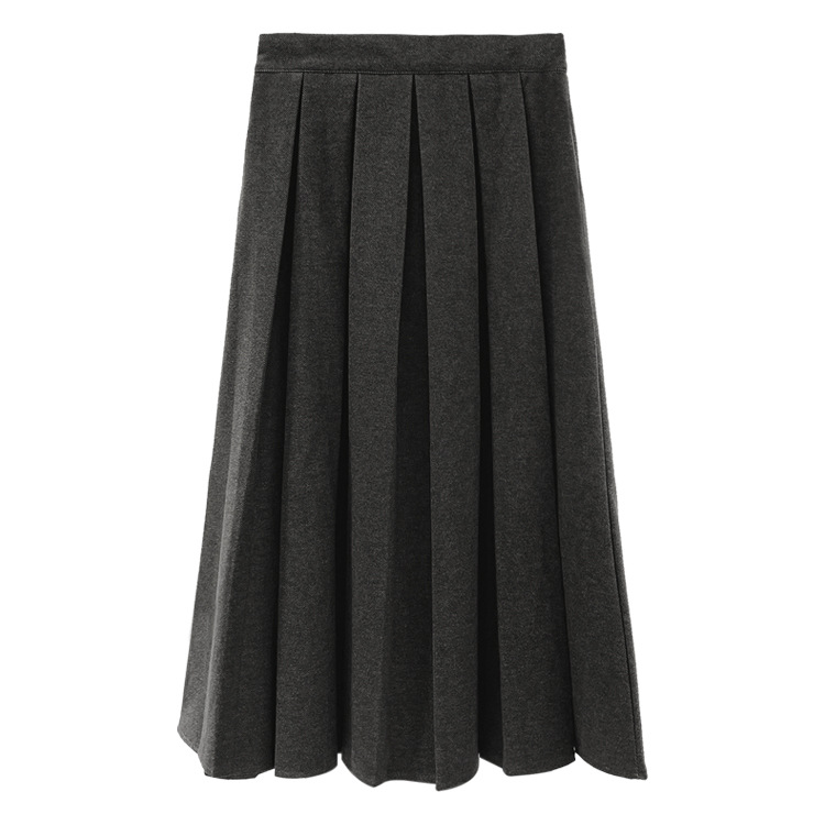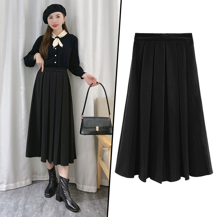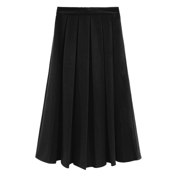 Шерстяная юбка 2024: освежающая, изысканная, из шерстяных тканей, свежая и нежная, длинная юбка однотонного черного цвета, плиссированная, миди.