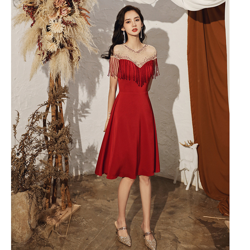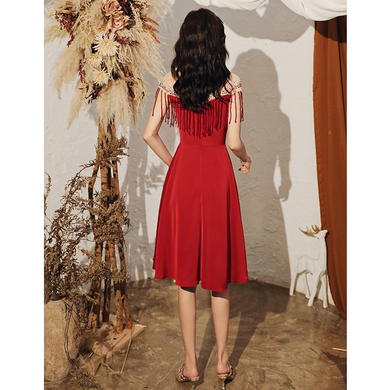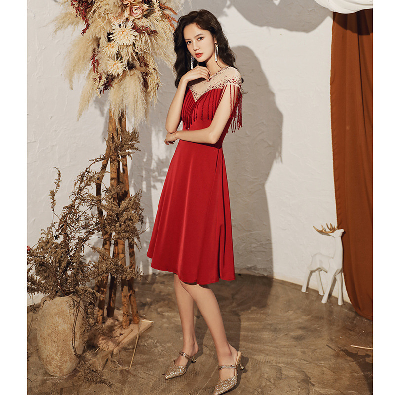 Алтонный костюм невесты 2024 новый летний помолвка красный темперамент маленькая вечерняя юбка женский короткий
