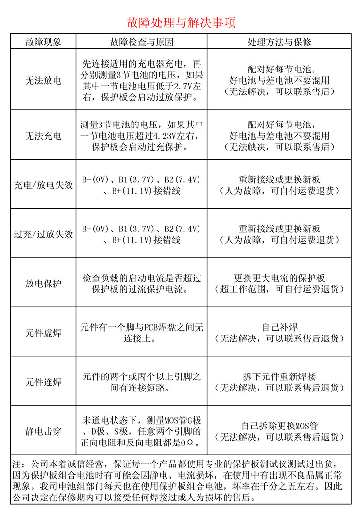 注意事项3:串联3组电池时,请保证每组电池的电压一样,如果不一样,请单独充满每组电池再串联使用。放电测试时,电压下降.快的那组电池是差电池。