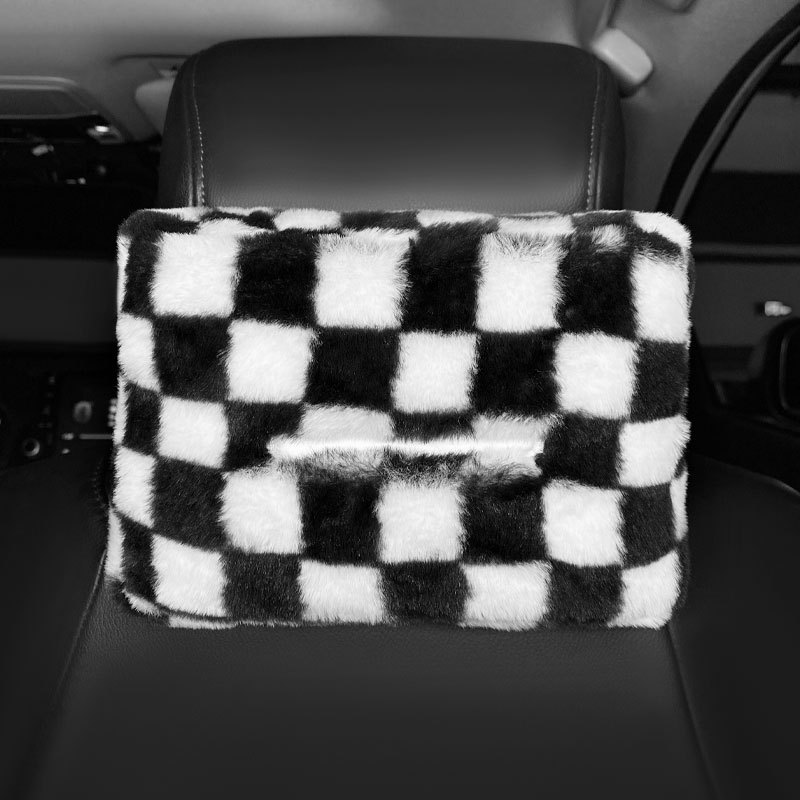 Плюшевая Автомобильная черно-белая клетчатая подушка