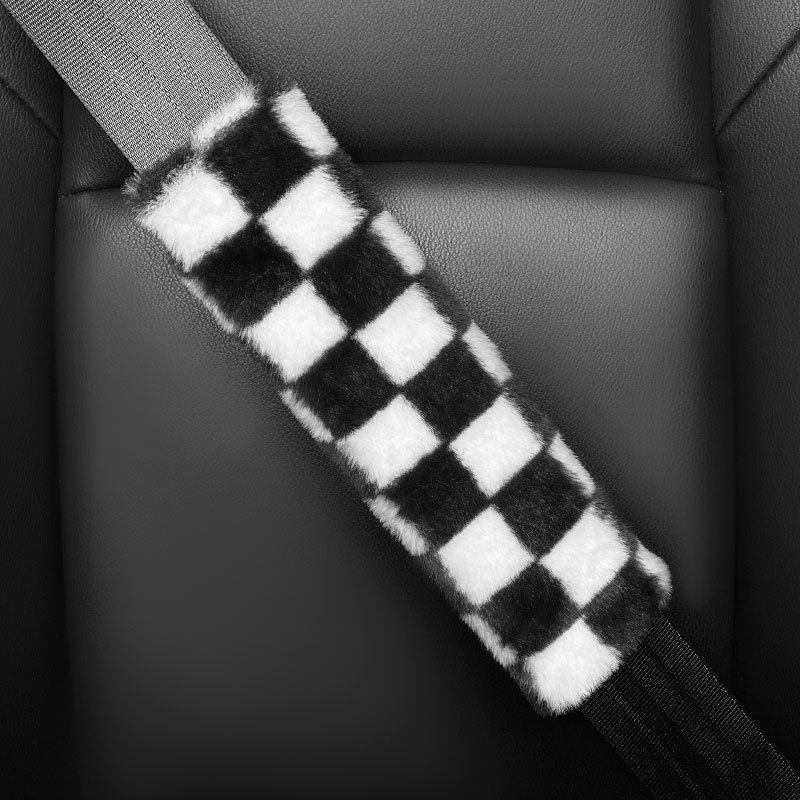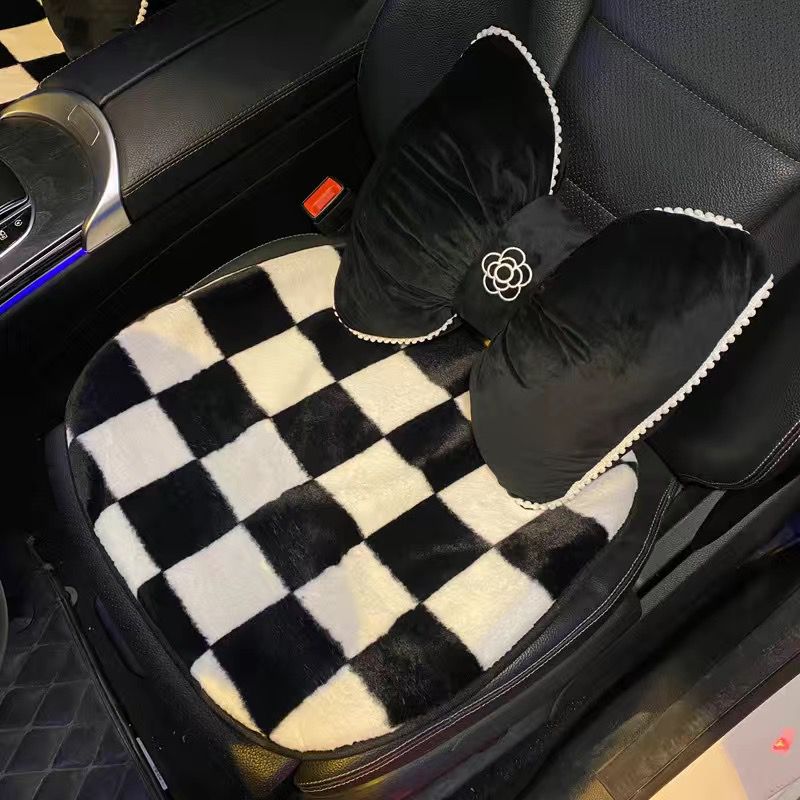 Автомобильная подушка в шахматную клетку, осень и зима, плюшевый Простой автомобильный коврик, теплый нескользящий автомобильный одиночный черно-белый клетчатый коврик