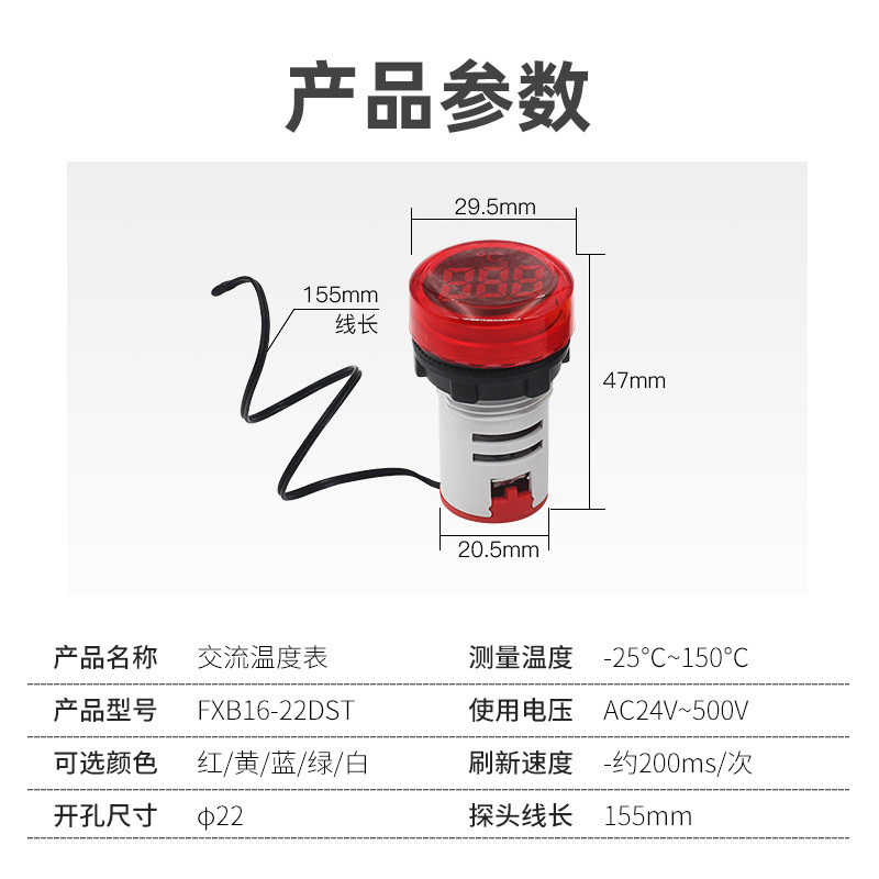 Индикатор температуры переменного тока AC24-500V-25-150 ° C круглый небольшой цифровой дисплей напряжения световой сигнал