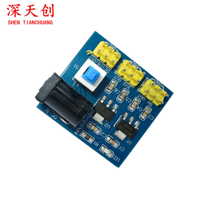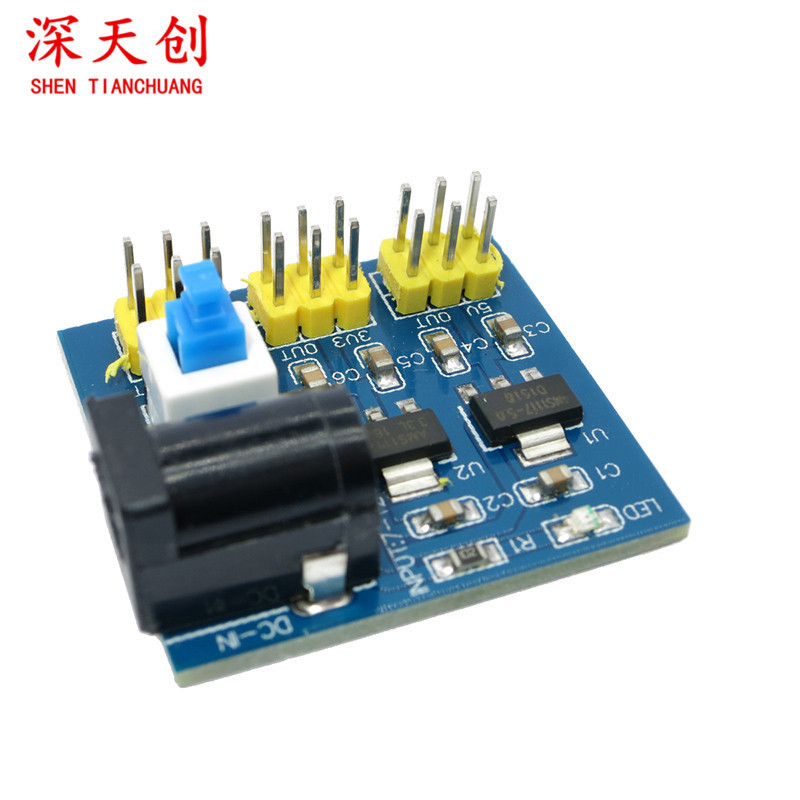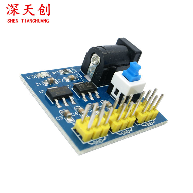 2 三路输出:3.3V(+-0.05v误差),5.0V(+-0.05v误差),800mA (负载电流不能超过800ma),12V(输入12V直接转输出)