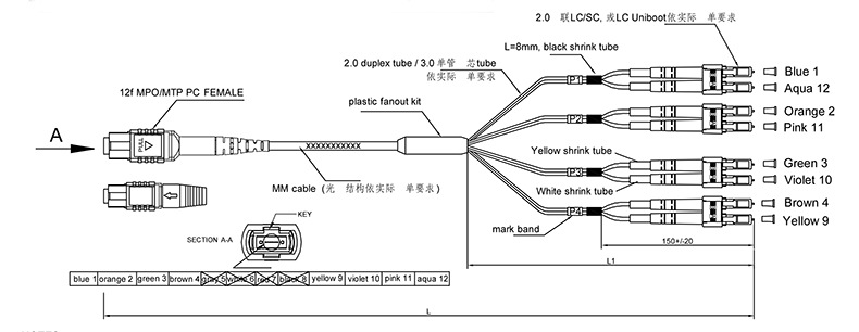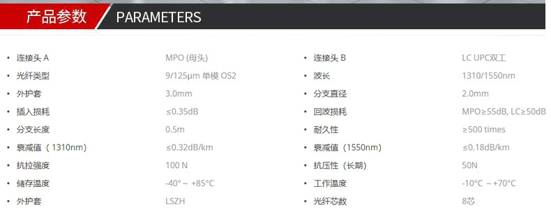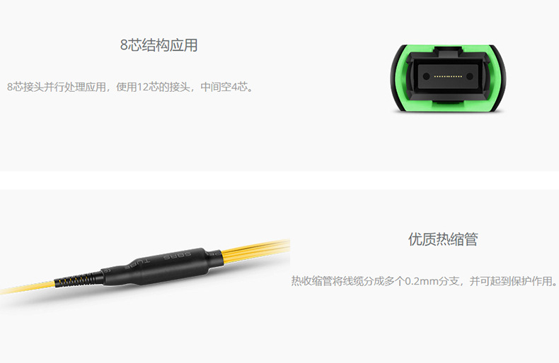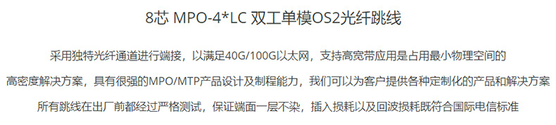 [Низкие потери] Финит MPO-LC 1 м 8-ядерный одномодовый 10-гигабитный оптоволоконный джемпер высокой плотности 40 г