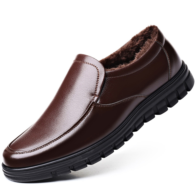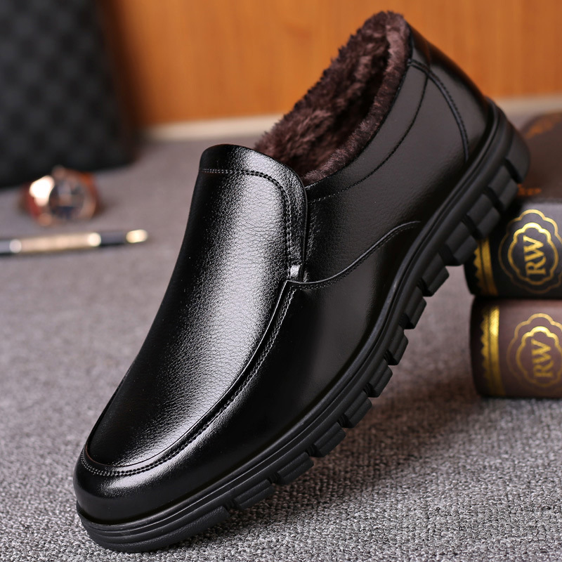 Кожаная обувь, мужская осенне-зимняя теплая кожаная мужская обувь на флисовой подкладке, деловая Повседневная модельная обувь, хлопковая обувь для пап среднего возраста