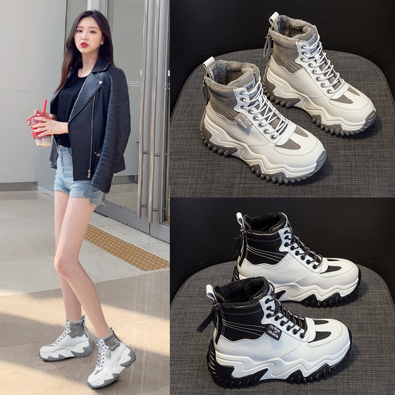 Туфли для папы, женские массажные туфли в корейском стиле на толстой подошве, осень-зима 2022, популярные универсальные повседневные хлопковые туфли на флисовой подкладке с теплой внутренней подкладкой