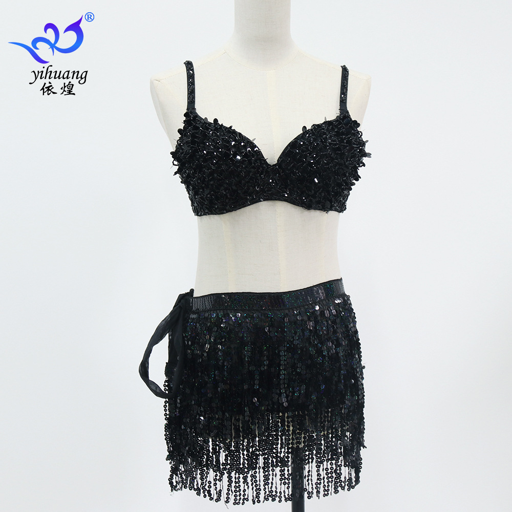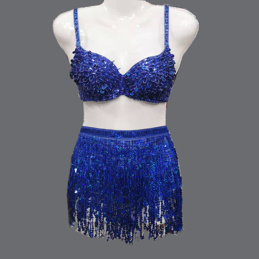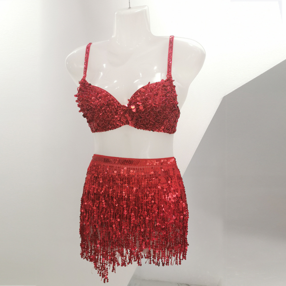 Костюм на Хэллоуин Платье с пайетками Танец живота Джазовый танец Стальная трубка Танцевальное платье с блестками и кисточками Платье для сценического выступления
