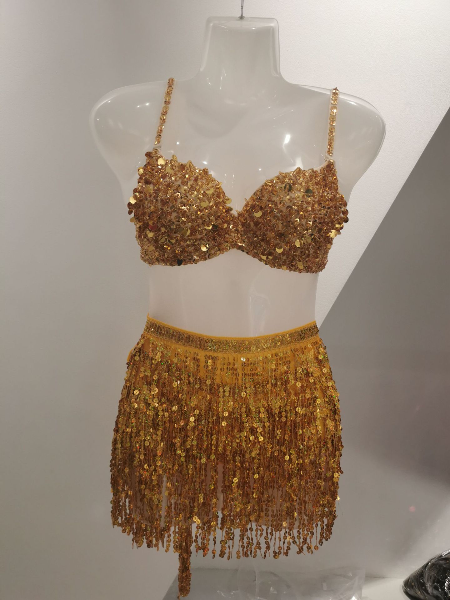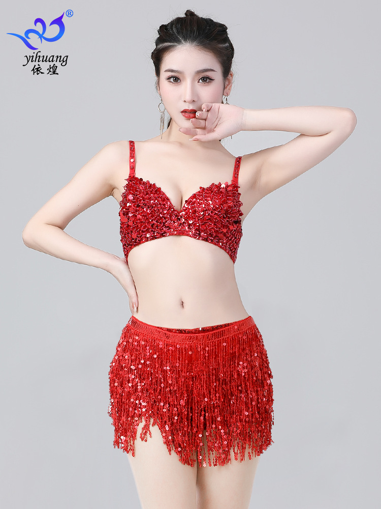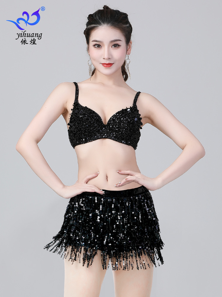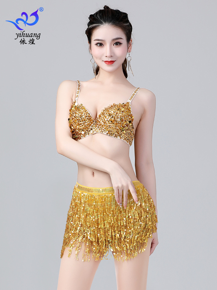 Костюм на Хэллоуин Платье с пайетками Танец живота Джазовый танец Стальная трубка Танцевальное платье с блестками и кисточками Платье для сценического выступления